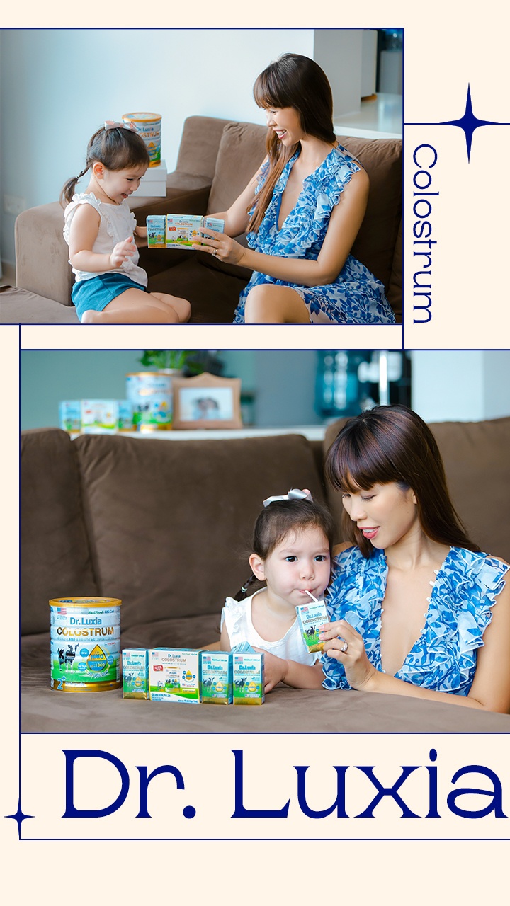 Về phần chăm sóc Myla, tôi thích dùng những sản phẩm tiện lợi dễ mang đi để đáp ứng nhu cầu bất chợt của con. Tôi rất hài lòng khi sản phẩm dinh dưỡng Dr. Luxia Colostrum có thêm dạng hộp pha sẵn, giúp tôi luôn an tâm rằng Myla được cung cấp đầy đủ dưỡng chất cần thiết để phát triển cân bằng dù đang đi học, đi chơi hay du lịch cùng cha mẹ.