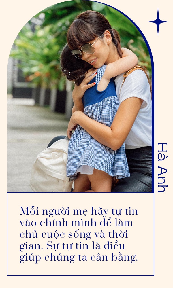 Như bao phụ nữ khác, Hà Anh có lúc đầu bù tóc rối khi vừa làm mẹ, vừa đảm nhận công việc ngoài xã hội. Thay vì hoang mang, cô tự viết công thức cân bằng cho bản thân và con gái.