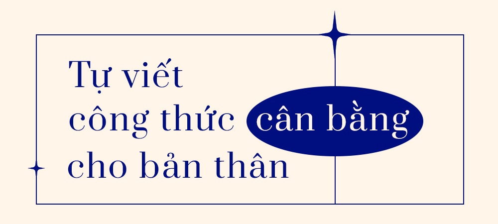 - Từ những trải nghiệm và quan sát cá nhân, tôi nghĩ rằng mọi sự cân bằng bền vững đều xuất phát từ bên trong, nói cách khác là cách ta nhìn nhận, suy nghĩ. Không ít chị em ôm đồm công việc hay theo đuổi sự cân bằng rạch ròi tới mức phân chia công việc và cuộc sống 50-50 một cách máy móc.