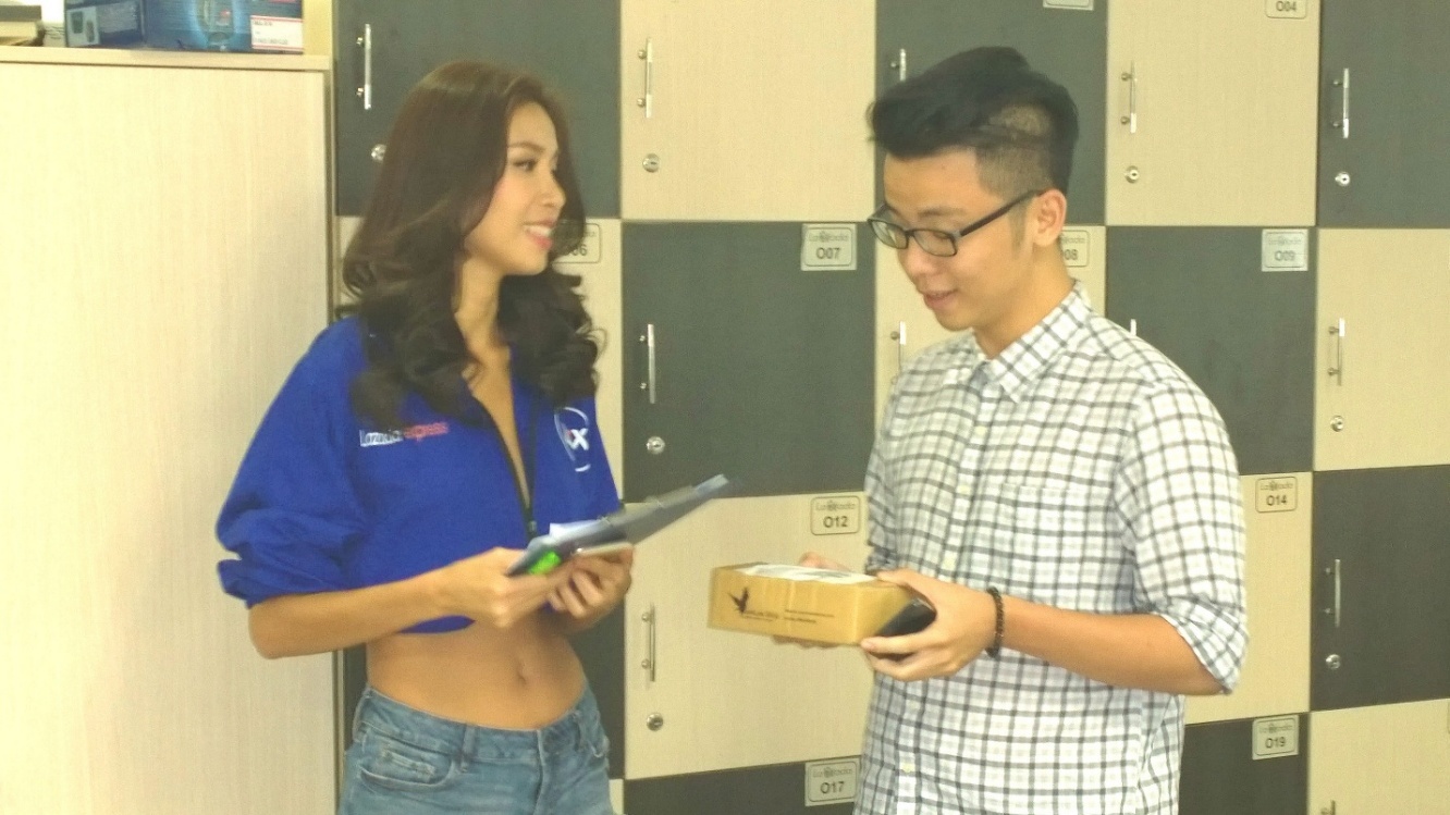 Cô gái hiện được mệnh danh là “Angelina Jolie Việt Nam” vừa bất ngờ xuất hiện trong vai trò nhân viên giao hàng của Lazada.