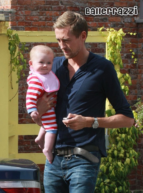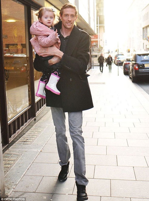 Sếu vườn Peter Crouch rất chịu khó chăm sóc con gái. Cánh săn ảnh thường xuyên bắt gặp cầu thủ người Anh nô đùa cùng con trên bãi biển, cho bé uống sữa hay bế Sophia đi dạo phố. |