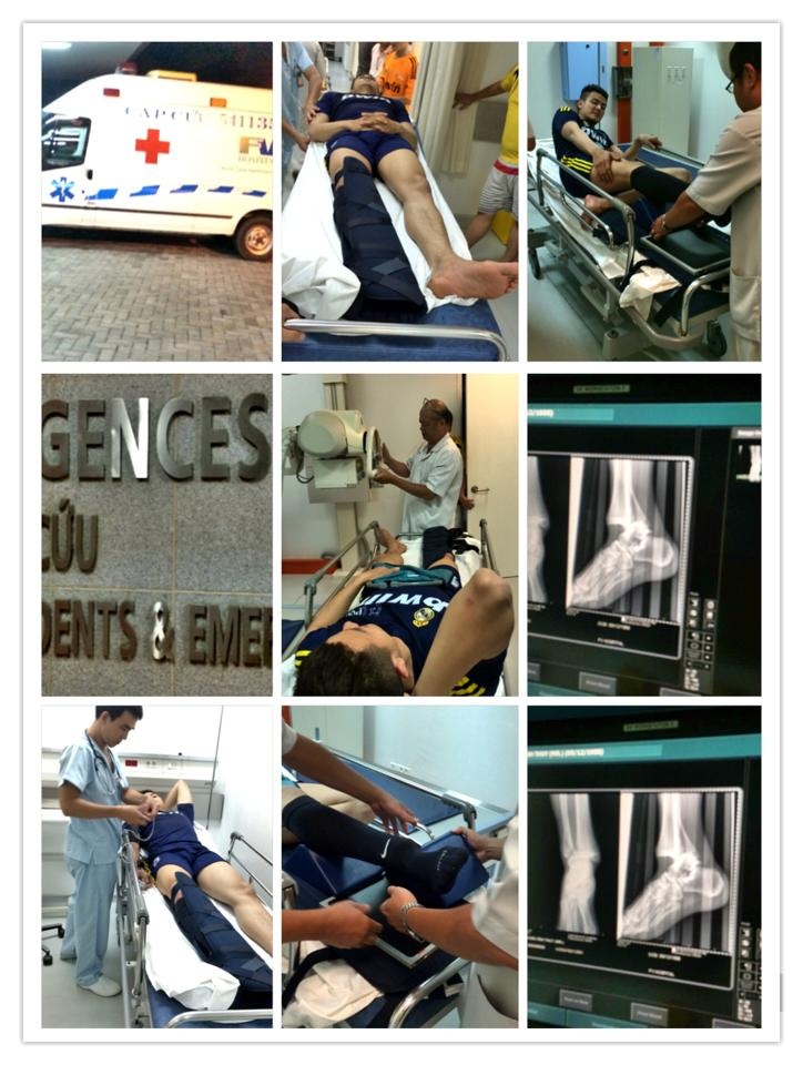 | Sau những va chạm trên sân cỏ, chấn thương của Vĩnh Thụy không hề nhẹ. |