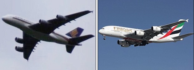 | Chiếc máy bay Airbus A80 tí hon (trái) và chiếc máy bay thật (phải). Ảnh: Dailymail. |