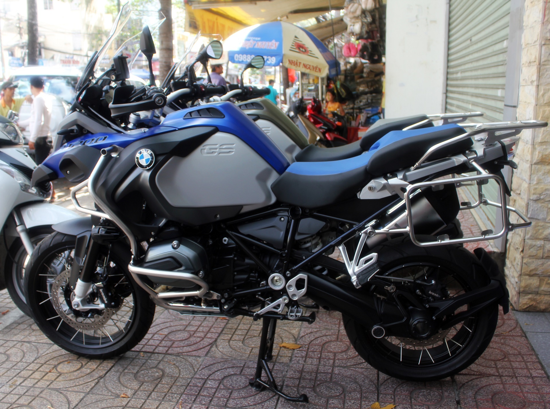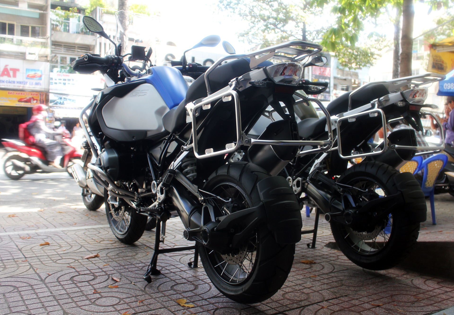 BMW R1200 GS Adventure là một chiếc mô tô lớn, được thiết kế để vận hành trên những địa hình hiểm trở. Nó từng được hai tay lái Ewan McGregor và Charley Boorman chạy xuyên từ châu Âu sang châu Phi. R1200 GS được ví như chiếc Land Rover Discovery hai bánh. Hai chiếc xe này vừa được cửa hàng mô tô Quyền Lan (TP.HCM) nhập khẩu về Việt Nam. |