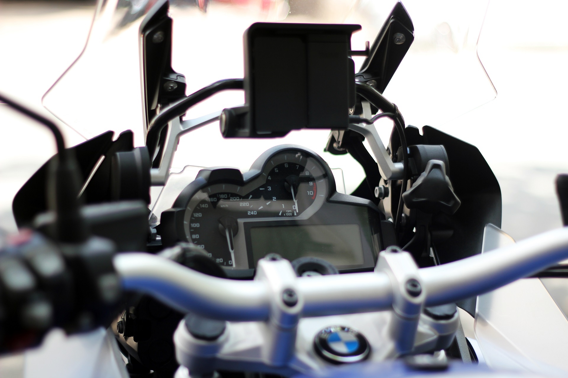 Bảng điều khiển trung tâm khá phức tạp, bao gồm các đồng hồ đo chỉ số vòng tua máy, tốc độ, một màn hình LCD và thiết bị dẫn đường bằng vệ tinh GPS. Phía trước là kính chắn gió lớn. |