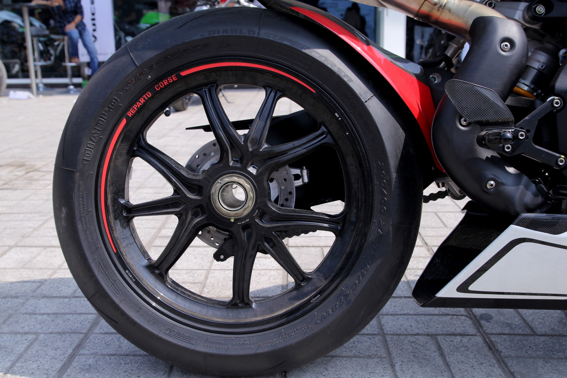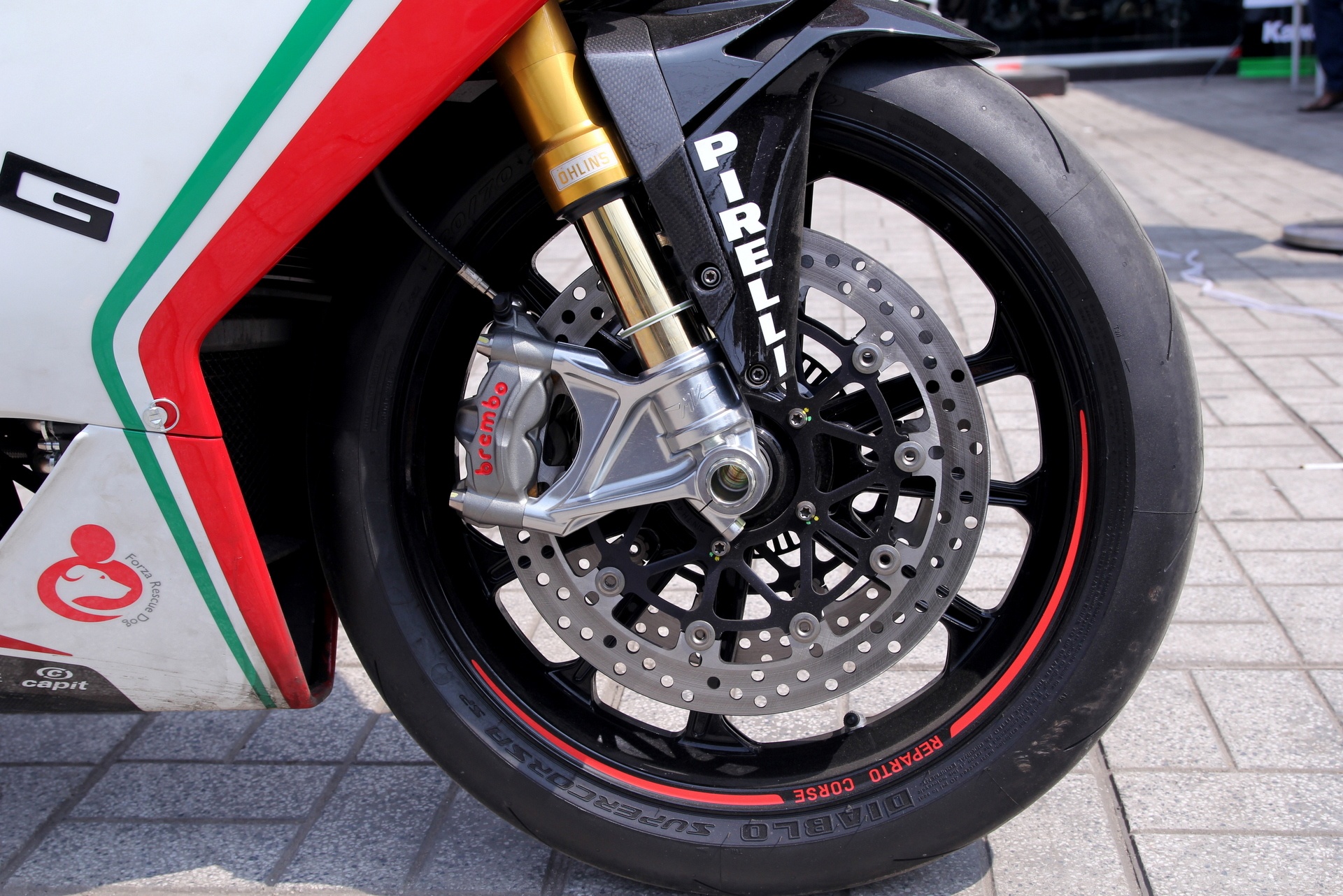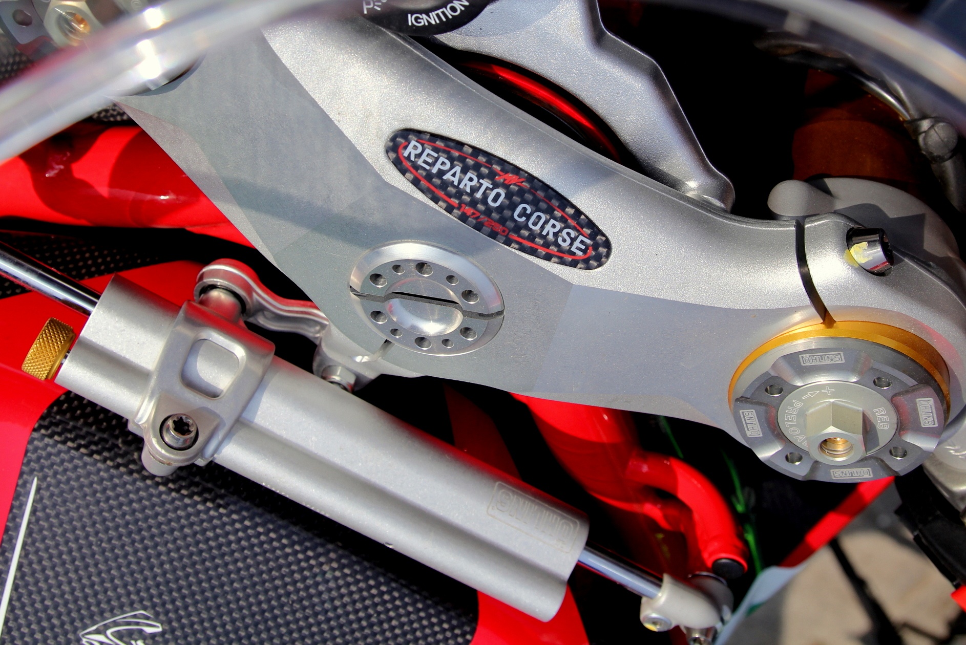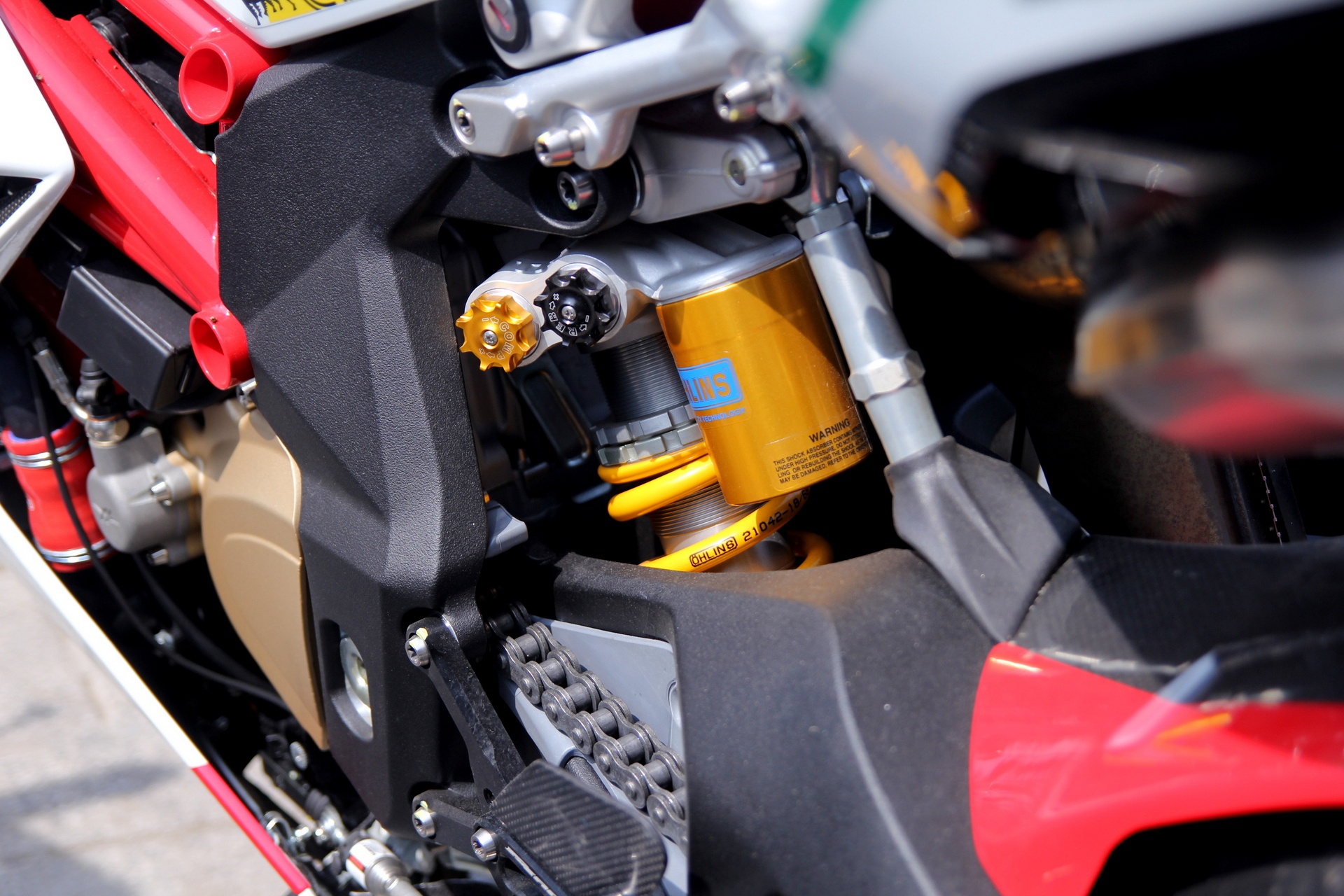 Những món đồ chơi hàng đầu được trang bị trên xe bao gồm hệ thống treo Ohlins cả trước và sau, phanh Brembo dành cho xe đua, ống xả Termignoni (phụ kiện tùy chọn). Phuộc Ohlins USD NIX 30 thủy lực có thể điều chỉnh được gắn phía trước. Hệ thống phanh trước là dạng phanh đĩa đôi, đường kính 320 mm, làm bằng thép. Kẹp phanh Brembo M50 giúp siêu môtô dừng lại nhanh.