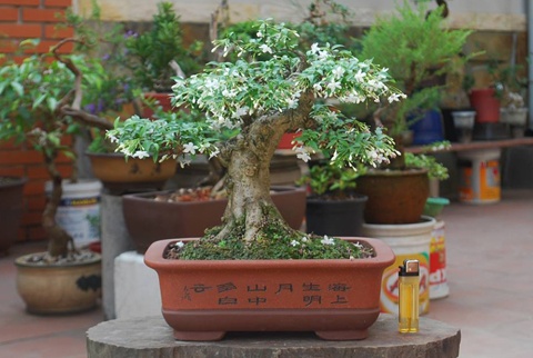 | Tuy nhiên, hơn hết, đó là tình yêu, sự đam mê, lòng nhiệt huyết và đức độ khiêm nhường, sẵn sàng chia sẻ kinh nghiệm, đã tạo lên hình ảnh thân thương trong con mắt mọi người. Ảnh: Cây mai chiếu thủy dáng trực có chiều cao chừng... 30cm. |