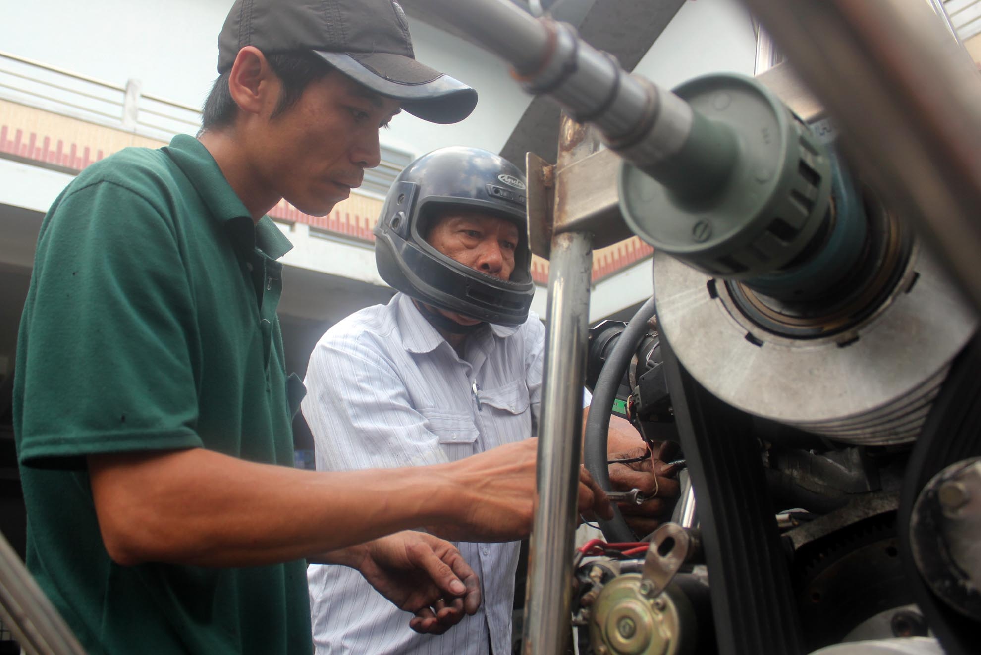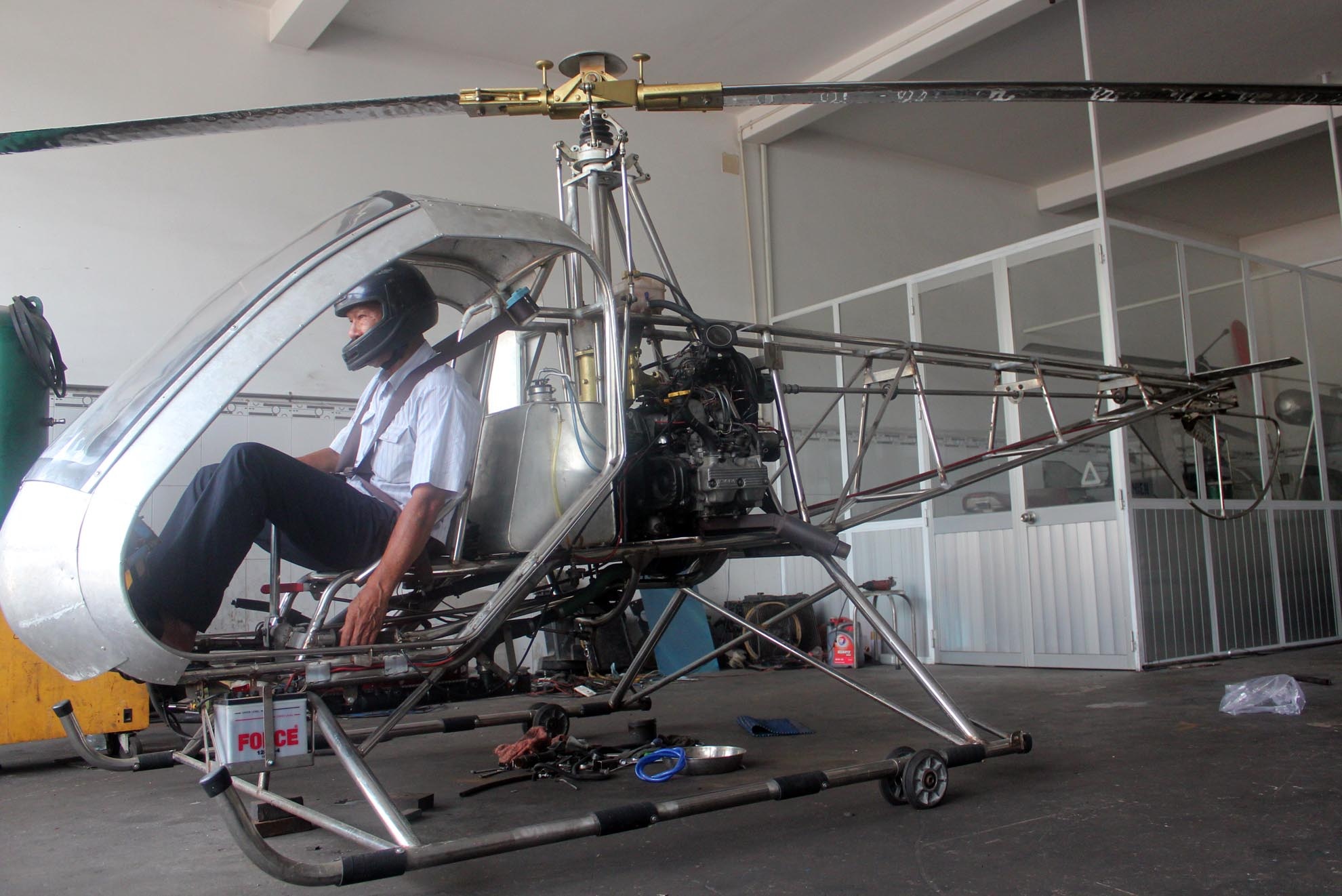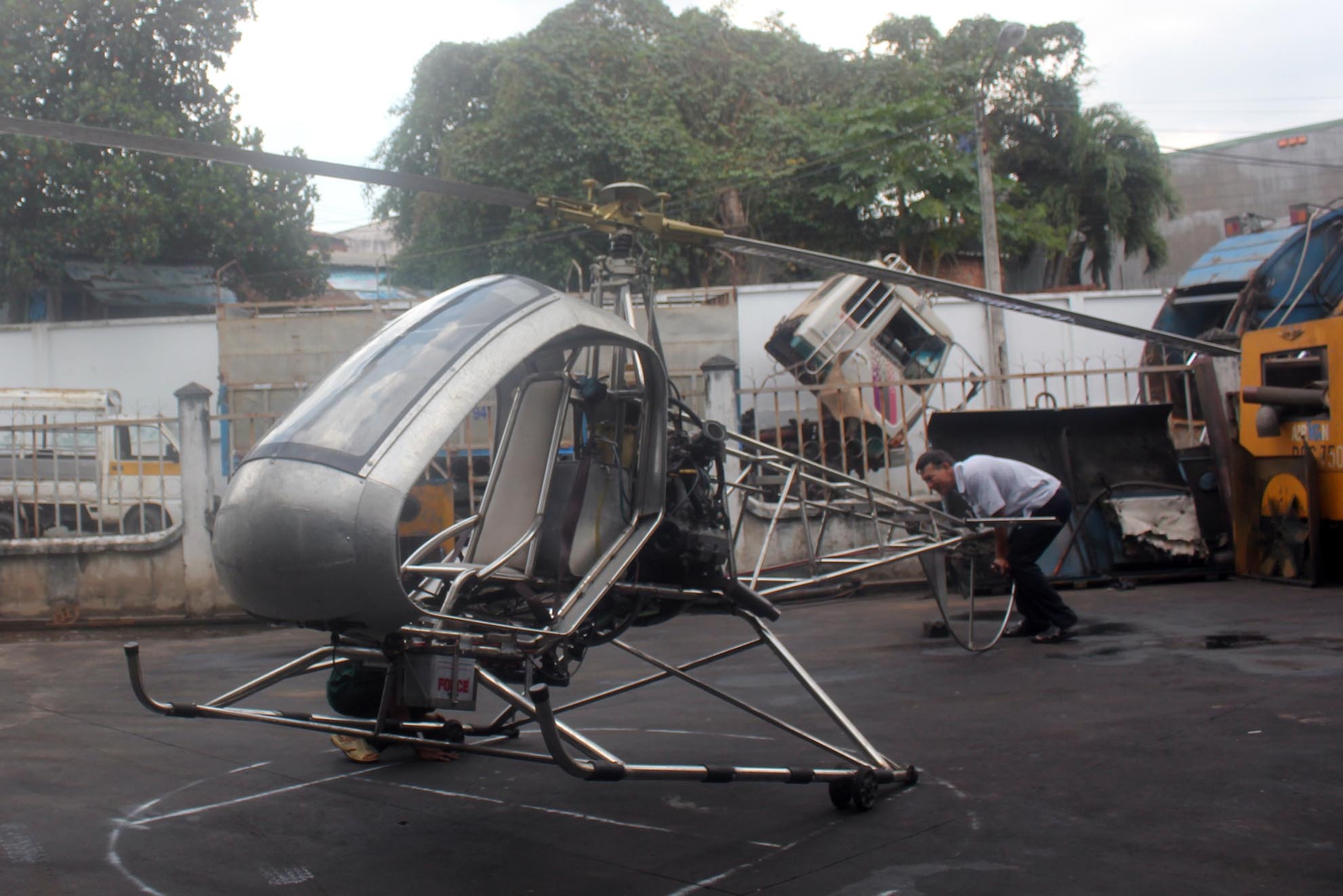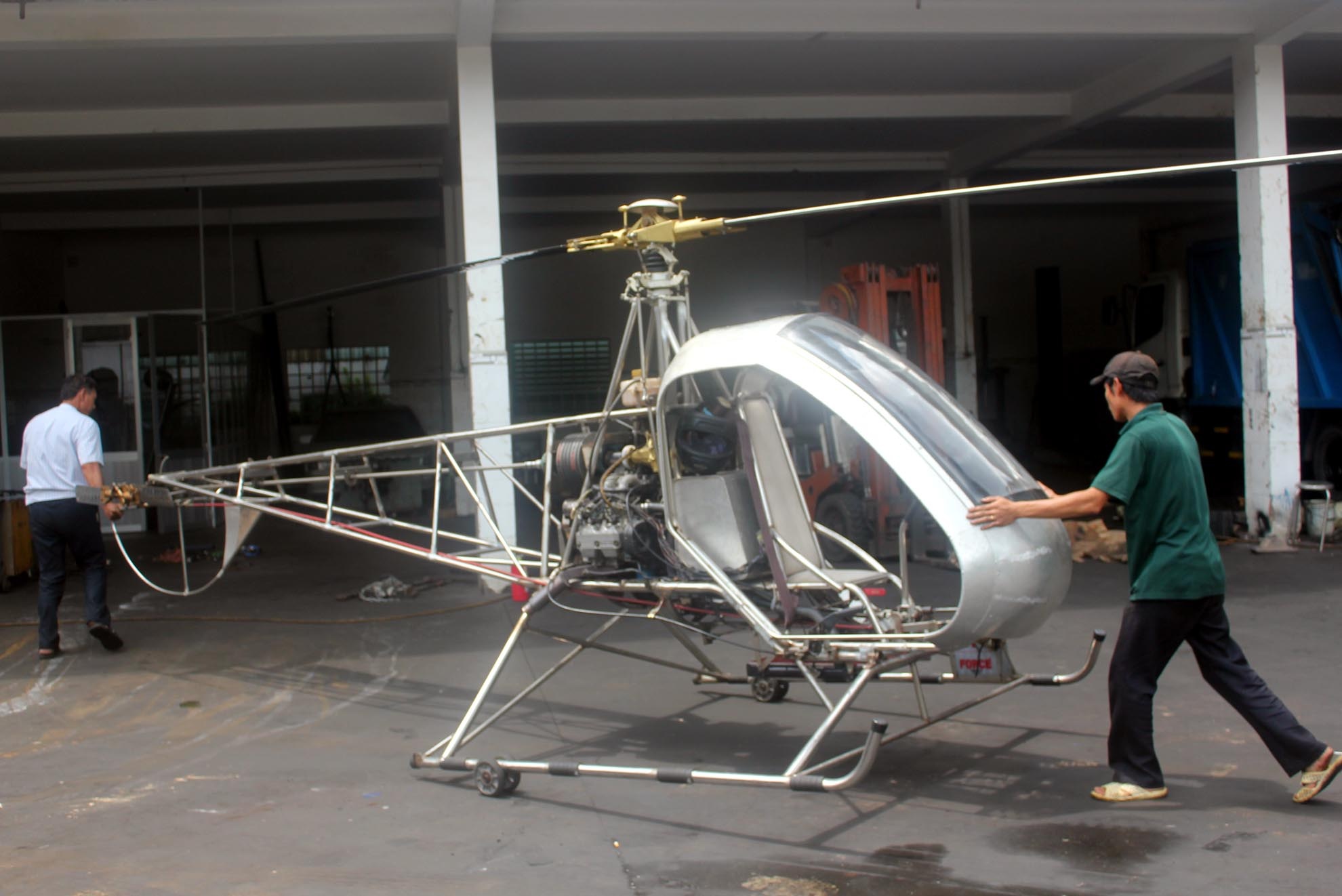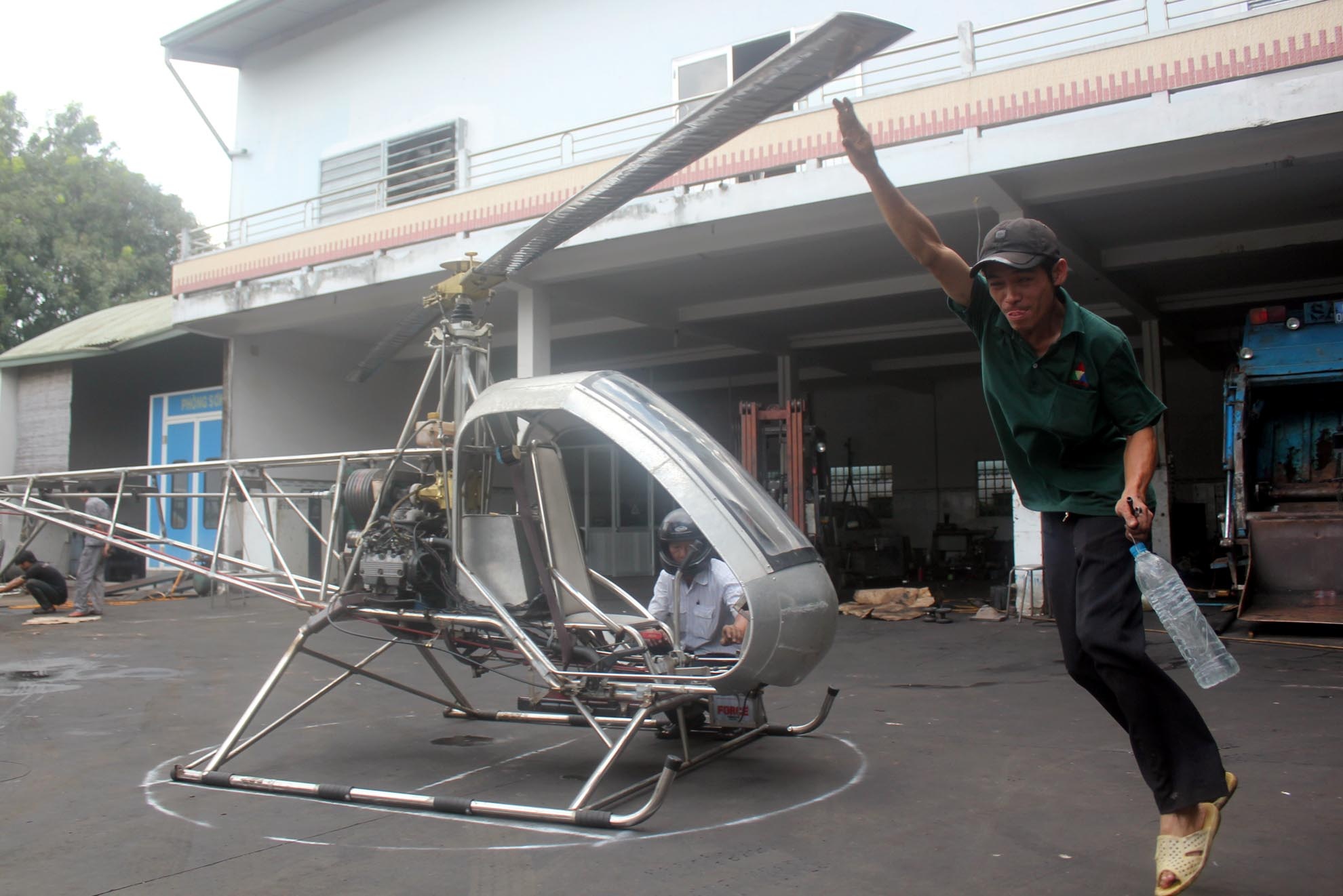 | Ông Hiển cho biết: "Mặc dù rất tự tin vào chiếc trực thăng thứ hai này sau nhiều lần thử nổ máy nhưng tôi đã rút kinh nghiệm từ chiếc trực thăng đầu tiên nên phải chờ cơ quan chức năng cho phép tôi mới cho trực thăng cất cánh". |