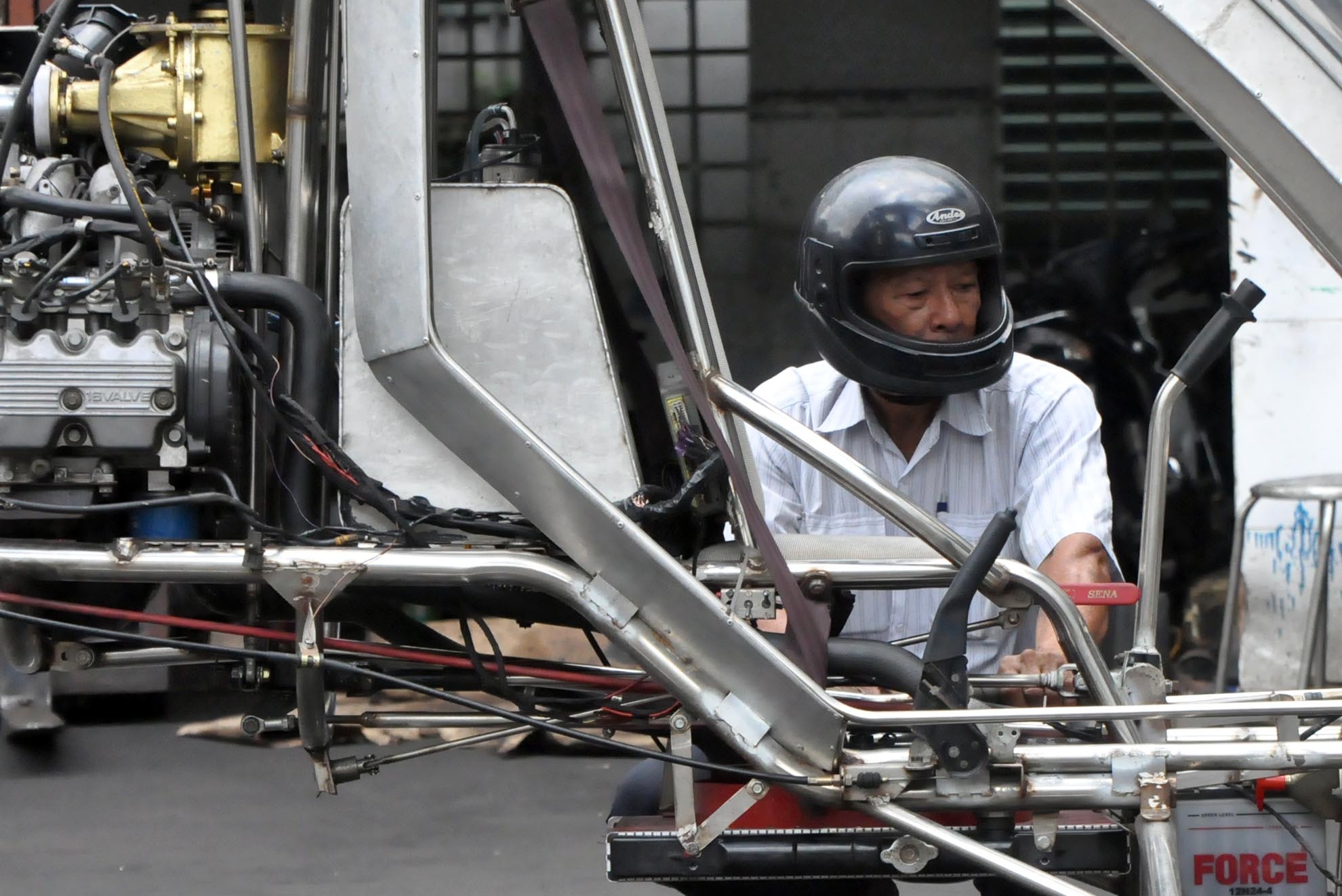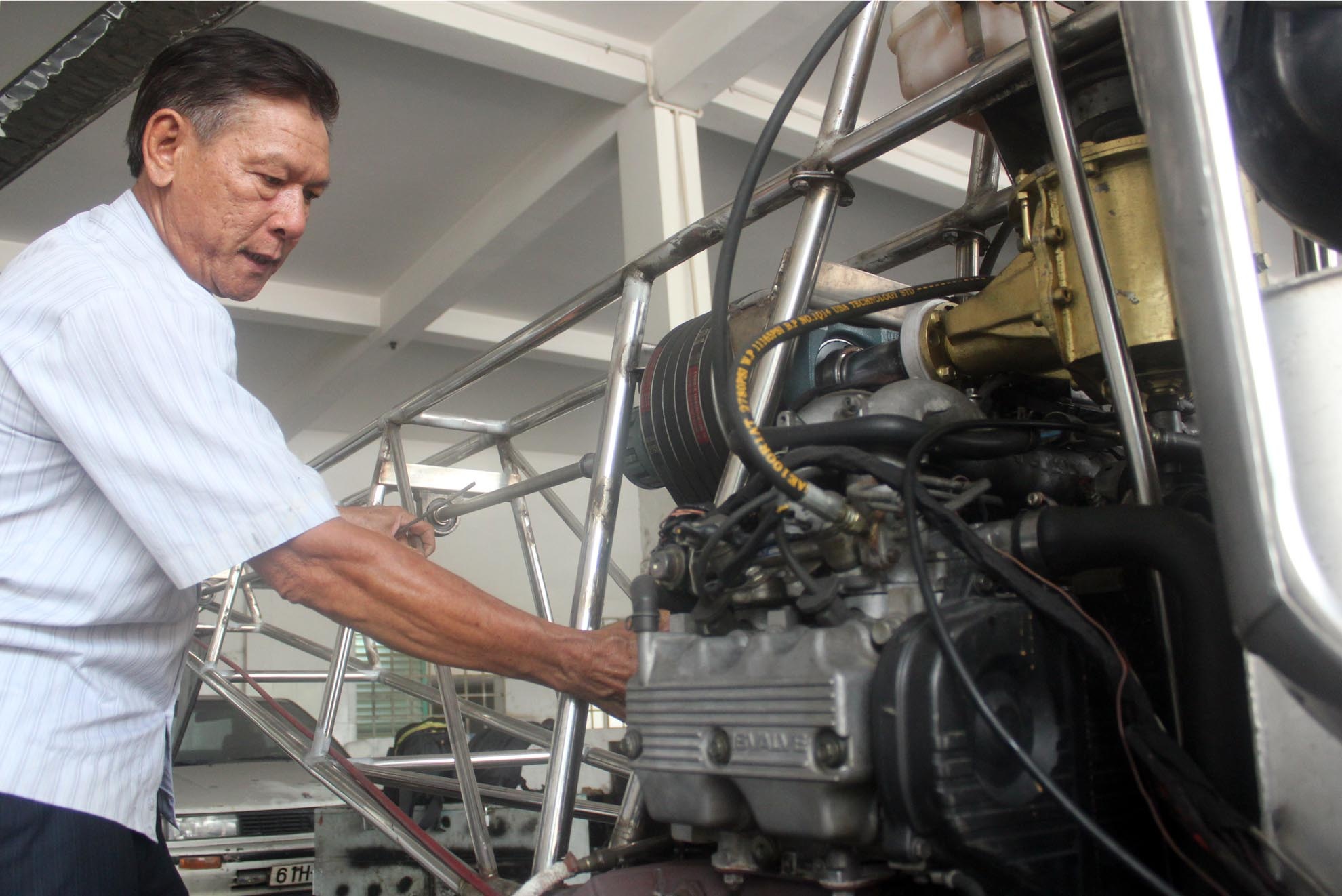 | Nói về chiếc máy bay thứ nhất (ảnh), ông Hiển phân tích việc chọn lựa động cơ của ca-nô, dù công suất máy cho đủ vòng quay, đủ sức gió nhưng có một khiếm khuyết là máy quá nóng. Với ca-nô còn có nước để làm mát, nhưng khi bay trên trời, sức nóng của máy làm trực thăng không bay được cao và thời gian bay ngắn. Tính đến thời điểm hiện nay, ở Việt Nam chỉ duy nhất trực thăng của kỹ sư Bùi Hiển là bay được, nhấc cao so với mặt đất hơn 1m, thời gian dừng trên không trung từ 10-15 phút. |