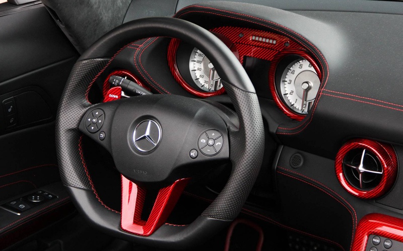 | Cản trước của SLS được Hamann mở rộng mỗi bên thêm 60 mm, và phía sau là 70 mm. Cản sau mới với bộ khuếch tán và hai lỗ thông hơi được trang bị nhằm tách không khí từ các bánh xe phía sau. Ngoài ra, còn một cánh gió phía sau sử dụng hoàn toàn bằng sợi carbon. Phiên bản Hamann Hawk Roadster được trang bị một hệ thống treo thể thao có thể điều chỉnh chiều cao xe lên đến 30 mm. Chiếc xe sẽ cho phản ứng mạnh hơn với chiều cao gầm xe cao hơn. |