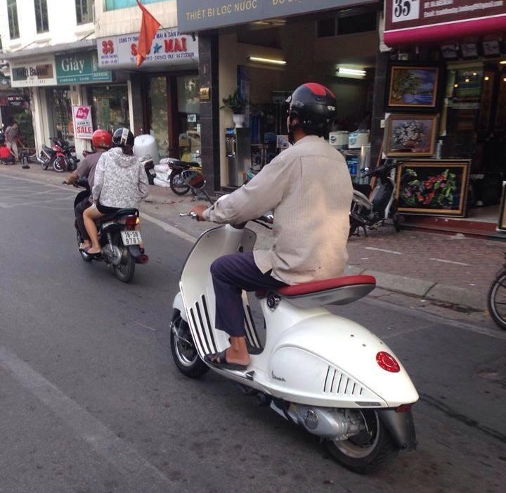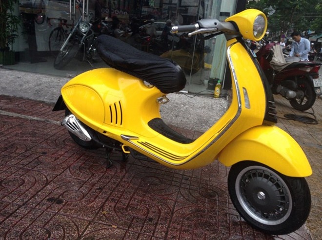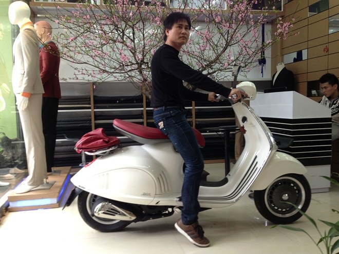 Chiếc Vespa 946 màu trắng ở Thanh Hóa thuộc sở hữu của thợ may Hoàng Lân, 48 tuổi. Xe về nước hồi tháng 7/2013 cùng 5 chiếc khác được cho là những chiếc Vespa 946 đầu tiên ở Việt Nam, thậm chí là đầu tiên ở Đông Nam Á. Ảnh: Hân Nguyễn.