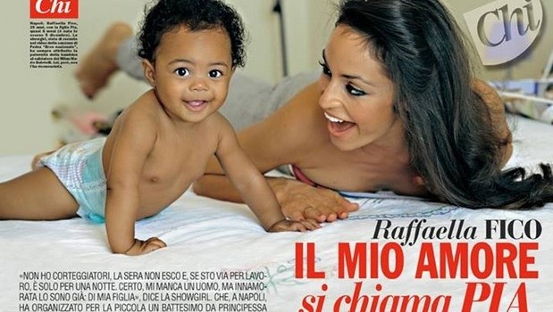 | Bé Pia đáng yêu bên mẹ Raffaella Fico. Ảnh: Chi. |