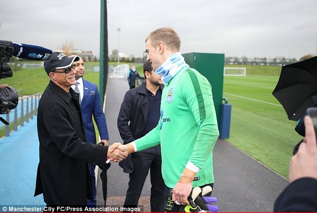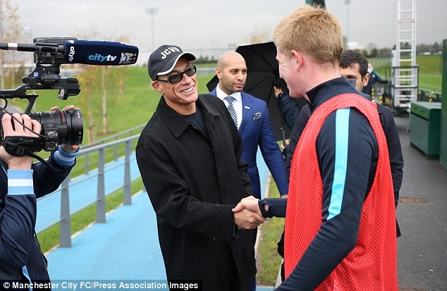 Jean-Claude Van Damme, siêu sao phim hành động của Hollywood thăm buổi tập của thầy trò HLV Manuel Pellegrini chuẩn bị cho đại chiến với Liverpool diễn ra cuối tuần này.
