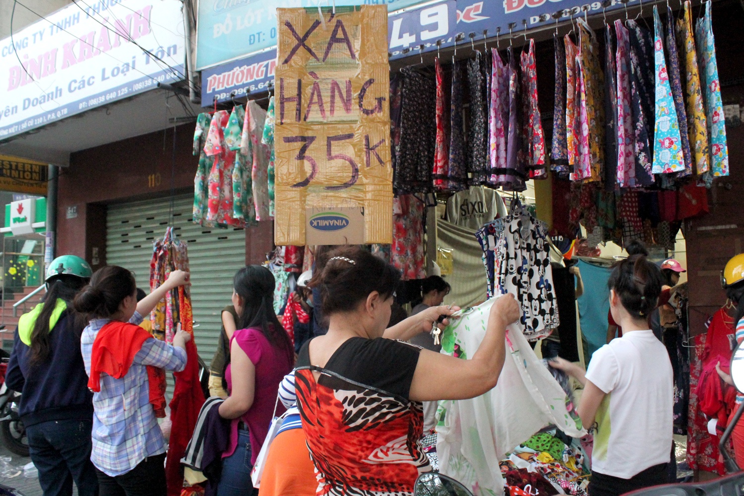 Theo khảo sát của phóng viên trên phố thời trang Nguyễn Trãi, quận 1, ngày thường các mặt hàng quần, áo thời trang có mức giá thấp nhất 80.000 đồng. Những ngày gần Tết, nhiều cửa hàng đăng bảng xả hàng chỉ còn 35.000 đồng.