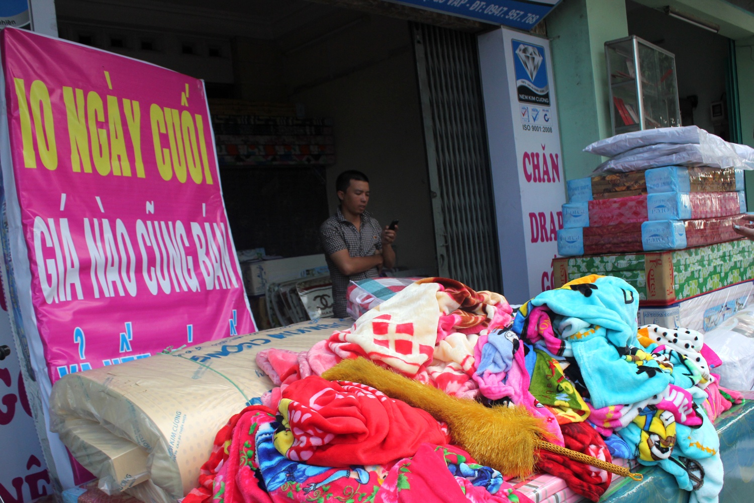 | Một cửa hàng chuyên bán chăn, ga, gối, đệm không niêm yết giá bán, để khách hàng trả giá