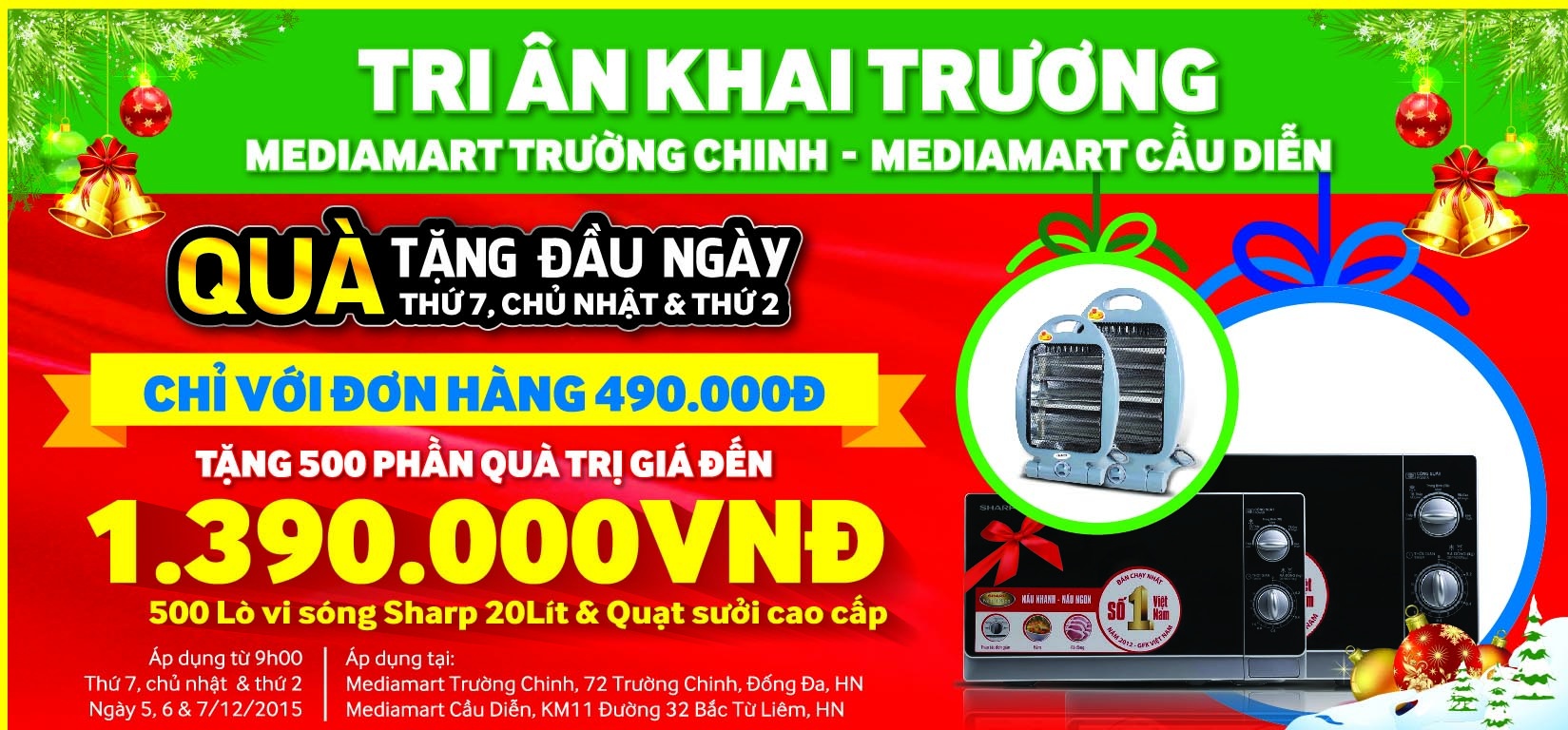 Tri ân khách hàng, MediaMart mang đến chương trình Quà tặng đầu ngày - chỉ với đơn hàng 490.000 đồng tặng 500 phần quà trị giá đến 1,39 triệu đồng gồm lò vi sóng Sharp và quạt sưởi cao cấp áp dụng duy nhất 3 ngày 5-7/12.