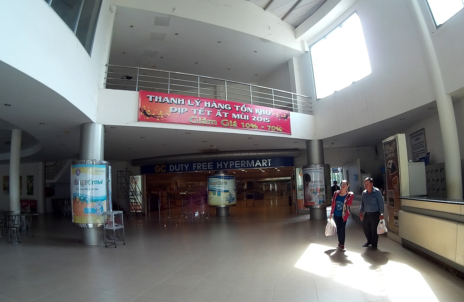 Ngày cuối tuần nhưng các siêu thị miễn thuế ở cửa khẩu Mộc Bài, Tây Ninh lại vắng như chùa Bà Đanh. Tại siêu thị miễn thuế GC, hàng hóa chỉ còn vài món, được bán tháo với giá rẻ.