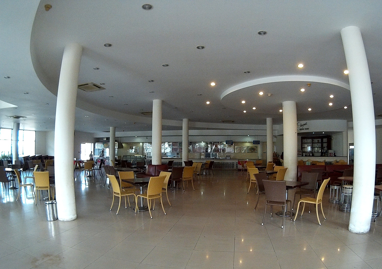 Khu vực ăn uống trước đây vốn nhộn nhịp nay không có một bóng khách. Ảnh chụp sáng 25/4.