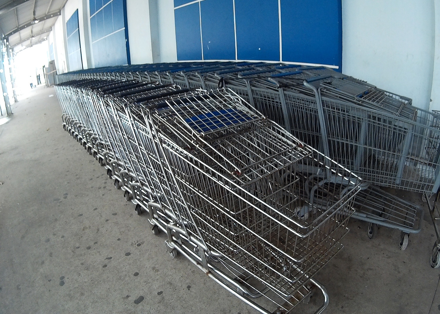 Những dãy xe đẩy lâu ngày không sử dụng, phủ một lớp bụi dày.