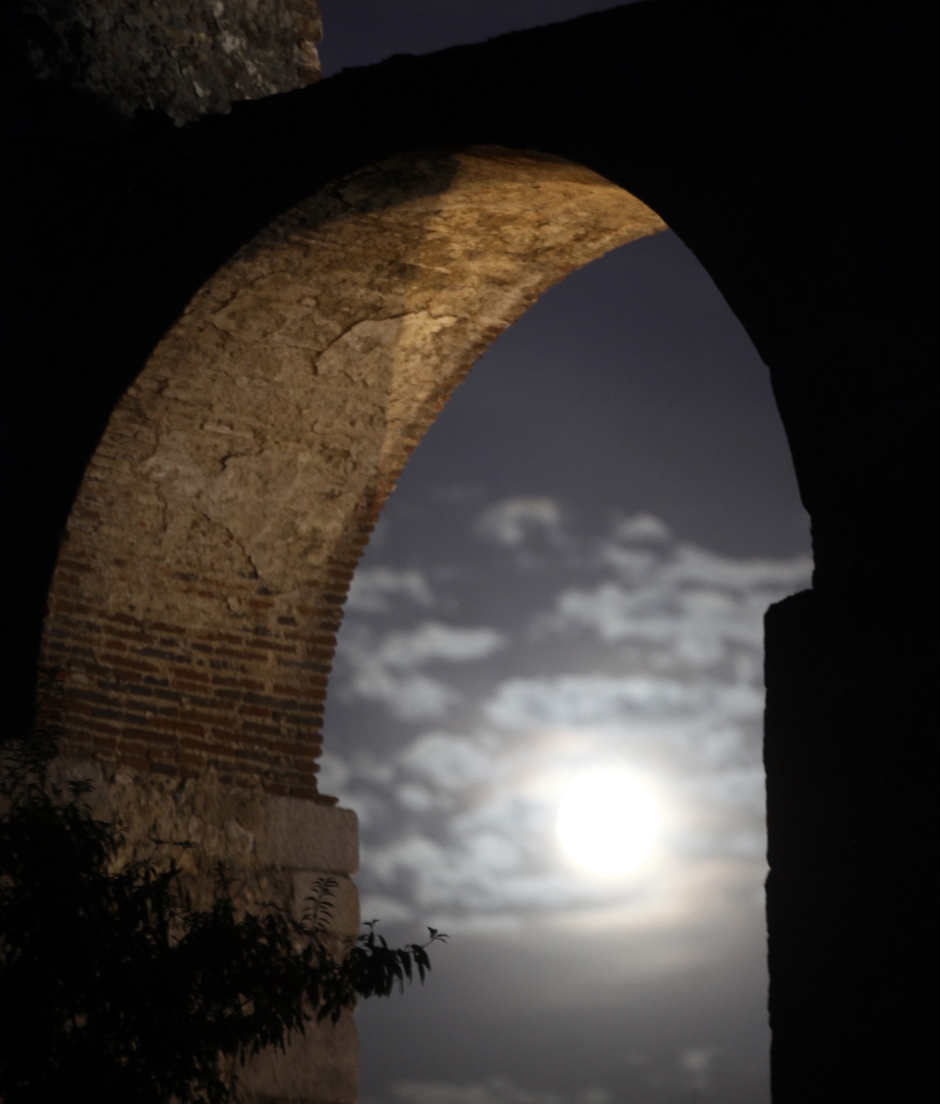 | Một góc quan sát siêu trăng khác cũng tại thủ đô Skopje ở Macedonia. Vào ngày này, mặt trăng sẽ to hơn và sáng hơn khoảng 10% theo quan sát so với những ngày trăng tròn khác. Ảnh: EPA |