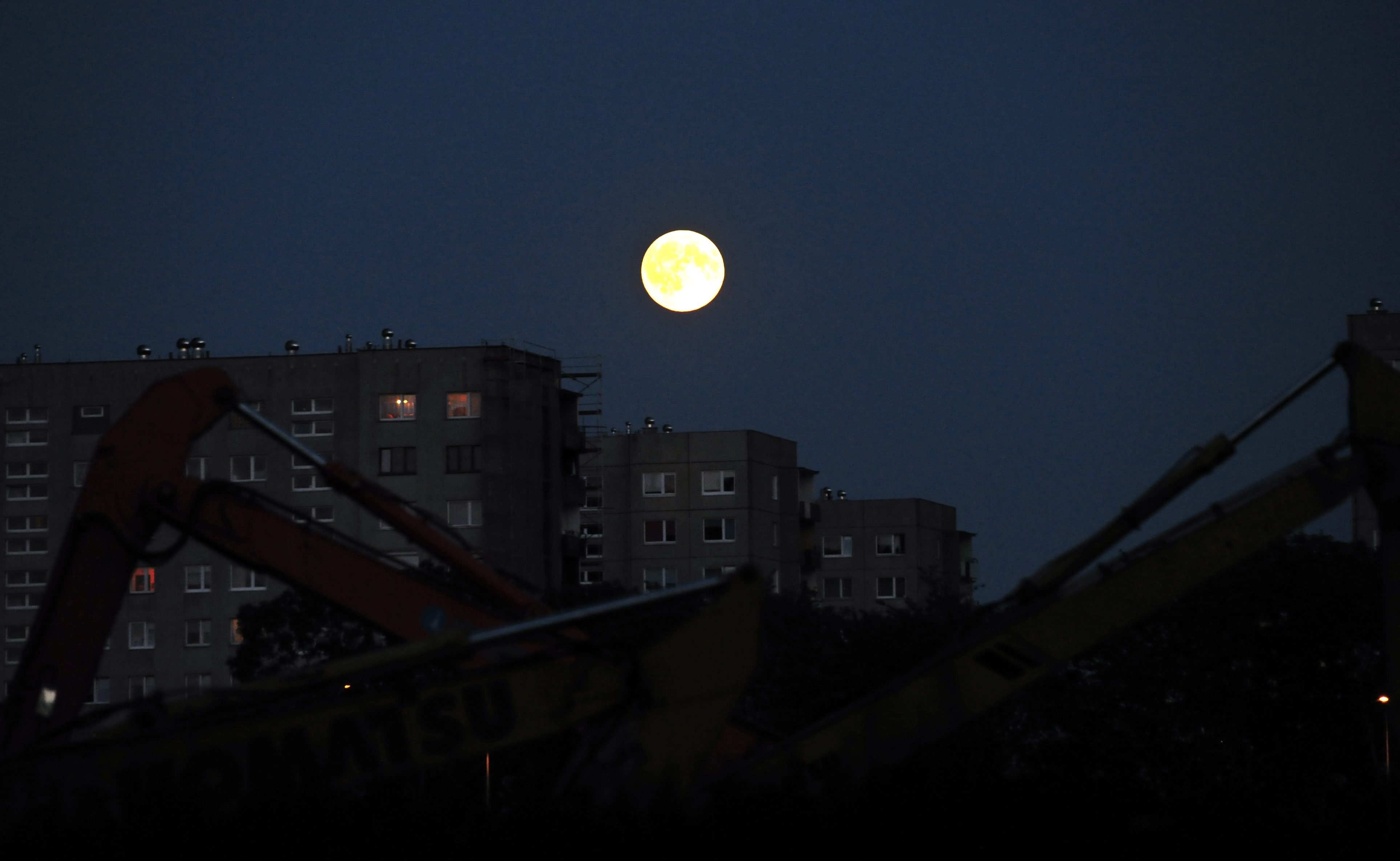 | Mặt trăng mọc ở thị trấn Kolobrzeg, Ba Lan, đêm 29/8. Ảnh: EPA |