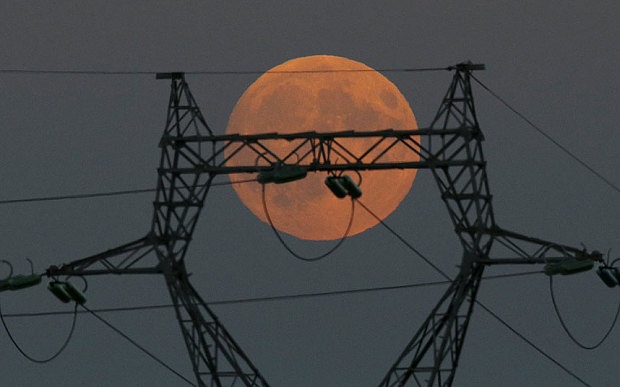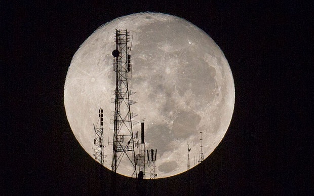 Siêu trăng làm nền cho ảnh chụp cột ăng truyền hình và phát thanh ở núi Boutilier, Port-au-Prince, Haiti. Ảnh: Telegraph |