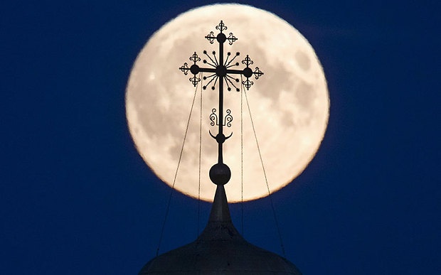 Trăng mọc trên mái một ngôi nhà mái vòm truyền thống ở Poschupovo, khu vực Ryazan, Liên bang Nga. Ảnh: Telegraph |