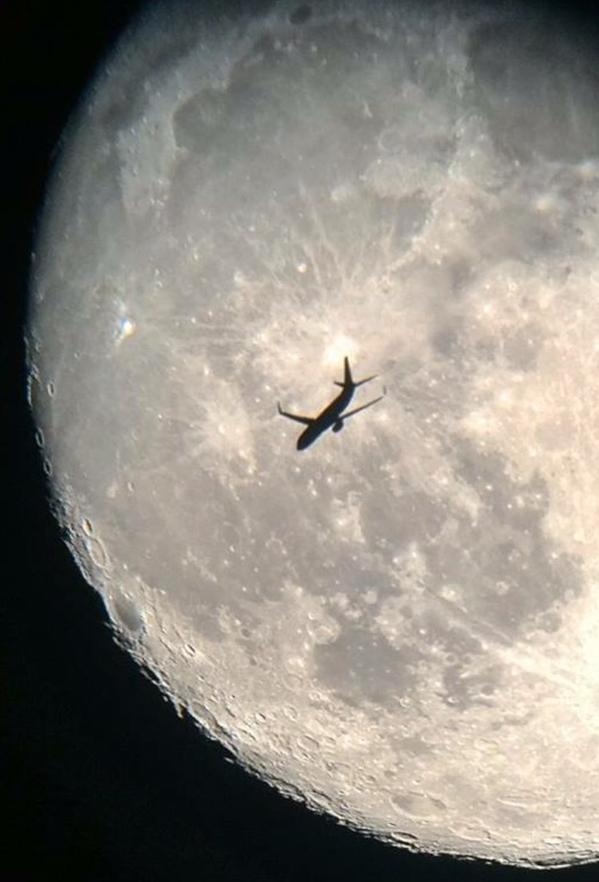 Phi cơ thương mại lướt qua mặt trăng ở West Kirby, Vương quốc Anh. Ảnh: Telegraph |
