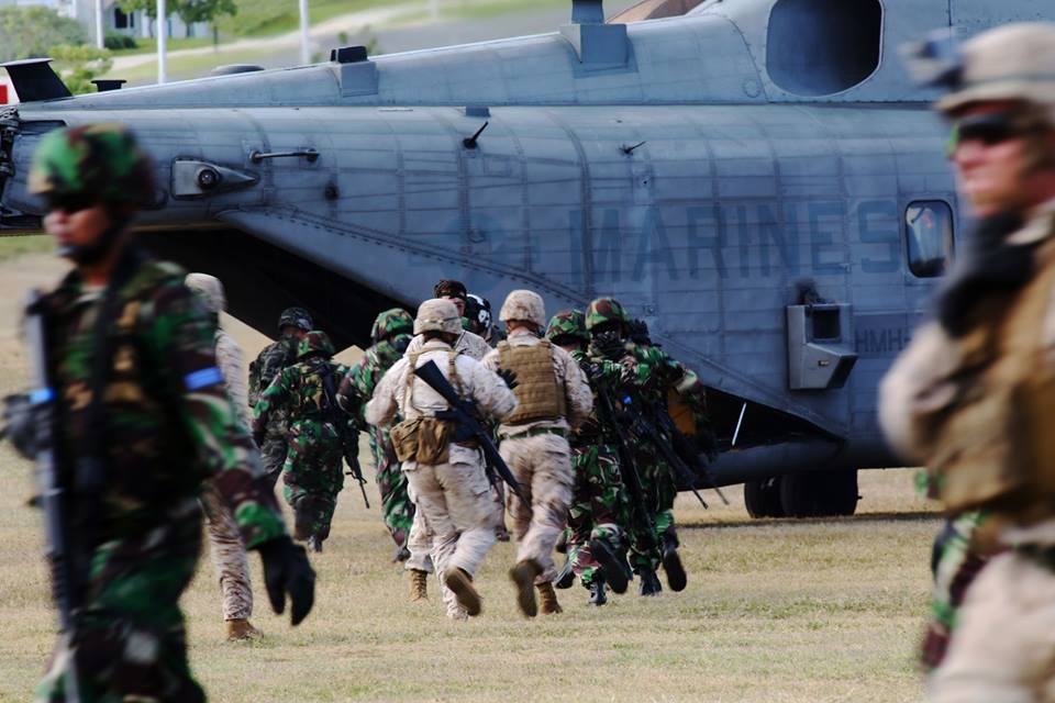 Thủy quân lục chiến Mỹ và Cảnh sát biển Indonesia lên máy bay vận tải hạng nặng để tập trận GAIT.