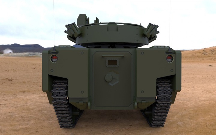 | Loại tháp pháo này được điều khiển hoàn toàn tự động, hệ thống kiểm soát hỏa lực được trang bị kính ngắm chuẩn cả ban ngày lẫn ban đêm và thiết bị đo đạc bằng laser. (Trong ảnh: Đồ họa xe chiến đấu Boomerang) |