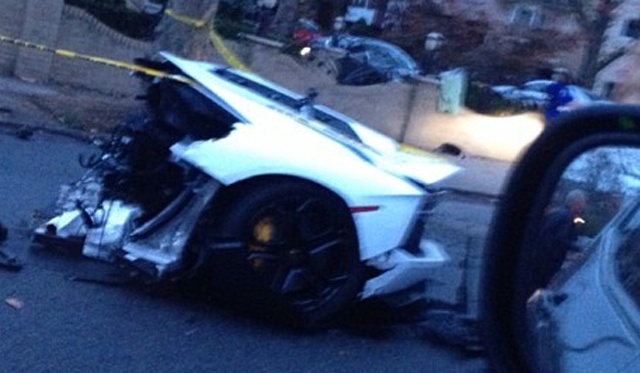 | Theo những hình ảnh có được, phần đuôi của siêu xe Lamborghini Avetador LP700-4 nằm lại ở giữa đường, trong khi phần đầu xe văng đến một bức tường gạch ở phía trước và đã bị cháy một ít. |