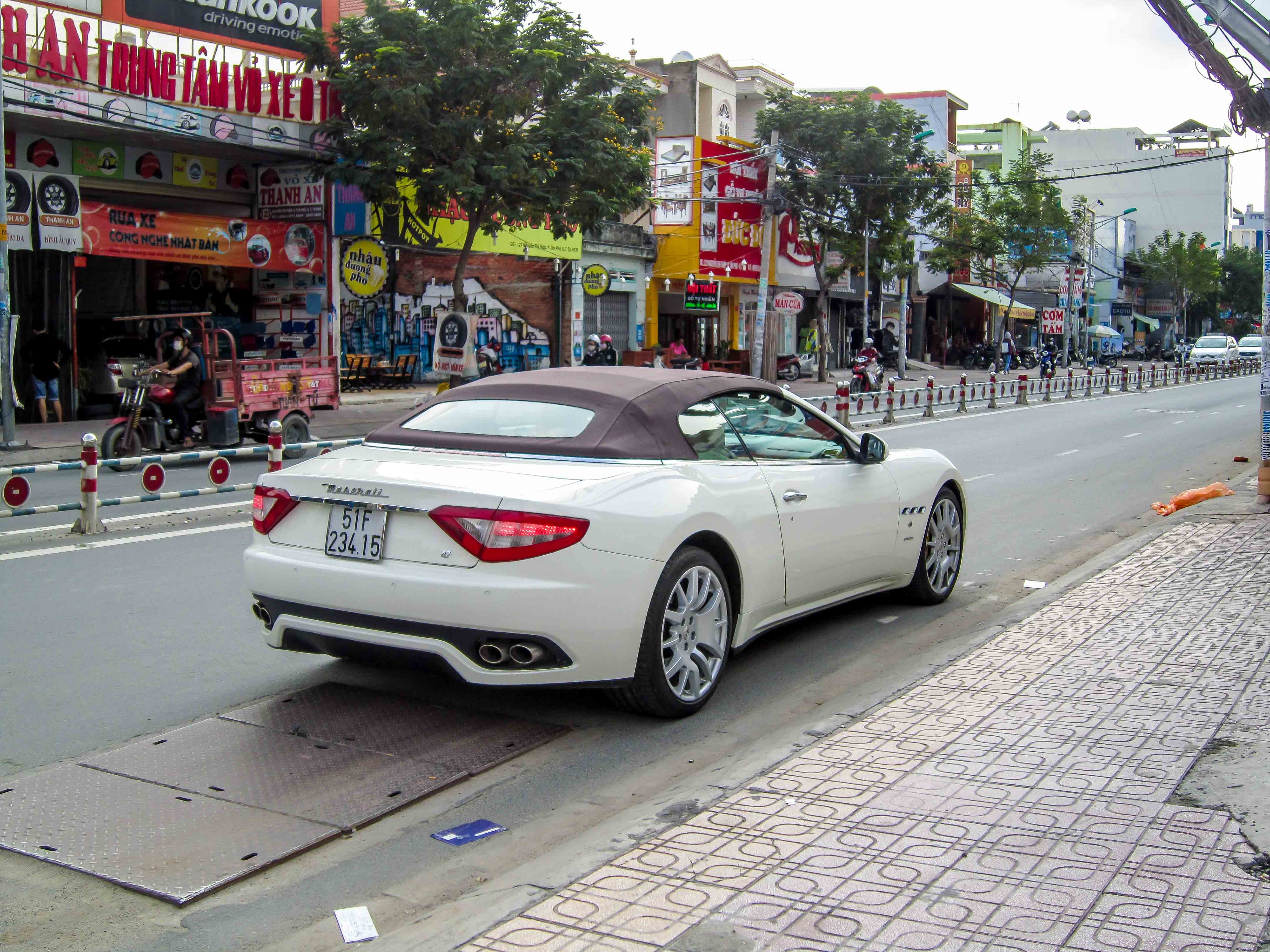 | Đây là chiếc Maserati GranCabrio hàng hiếm xuất hiện tại Sài Gòn. Trước khi sản xuất GranCabrio, Maserati từng sản xuất mẫu xe mui trần Spyder. Trong khi Spyder chỉ có 2 chỗ ngồi thì GranCabrio đủ chỗ cho bốn người. |