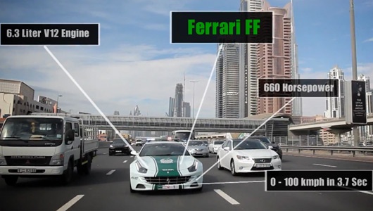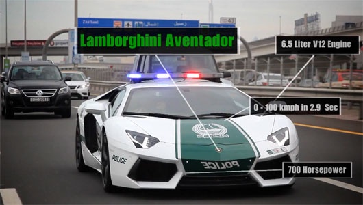 Như vậy, tính đến thời điểm hiện tại, đội hình xe tuần tra của cảnh sát Dubai bao gồm Lamborghini Aventador, Ferrari FF, Chevrolet Camaro, Bentley Continental, Aston Martin One-77, Mercedes-Benz SLS, Bugatti Veyron, BMW M6, Ford Mustang và Renault Twizy.