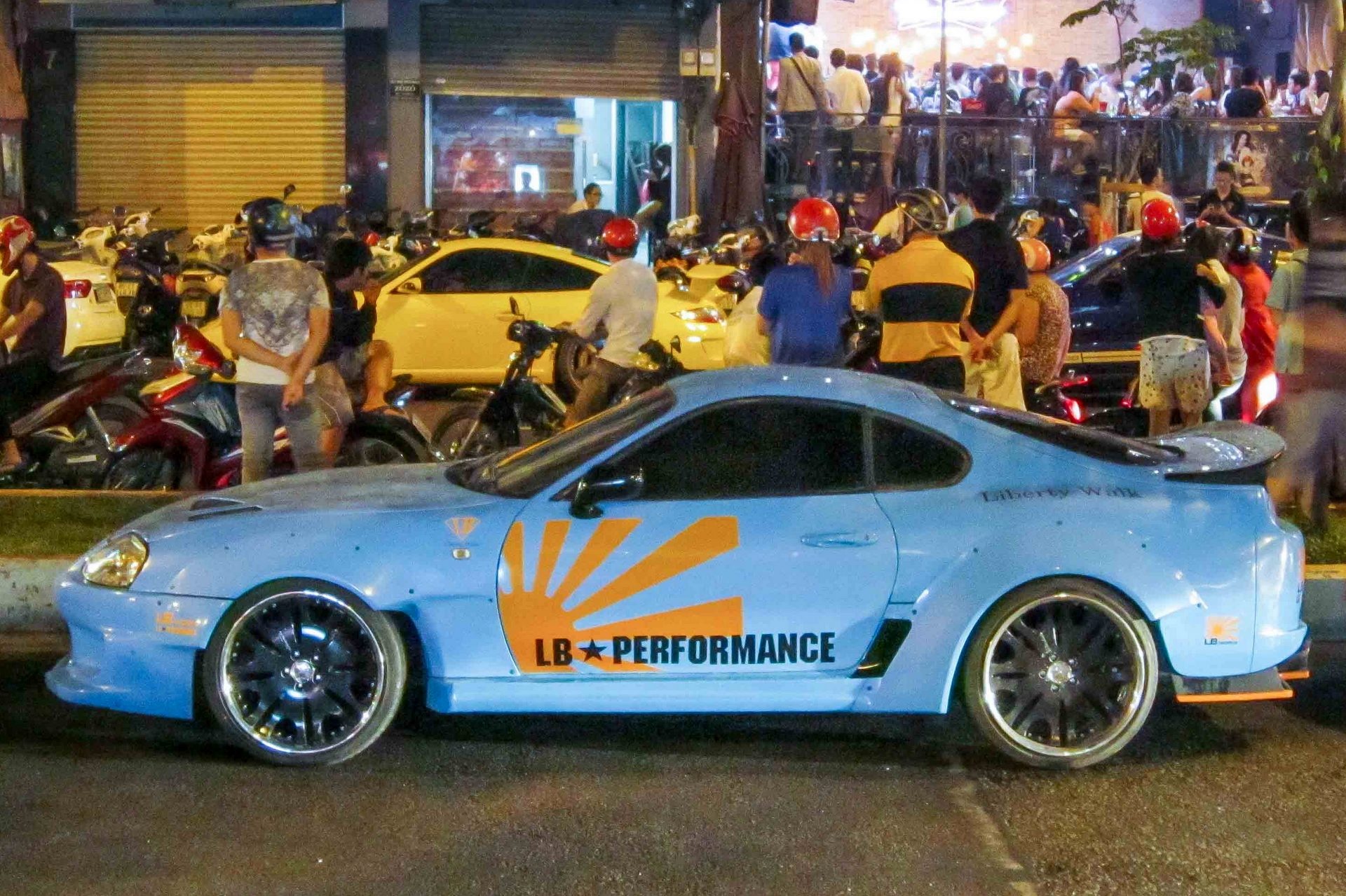 | Toyota Supra độ thân rộng của hãng Liberty Walk. Ngoài ra, động cơ cũng được độ turbo cho công suất cực mạnh. |