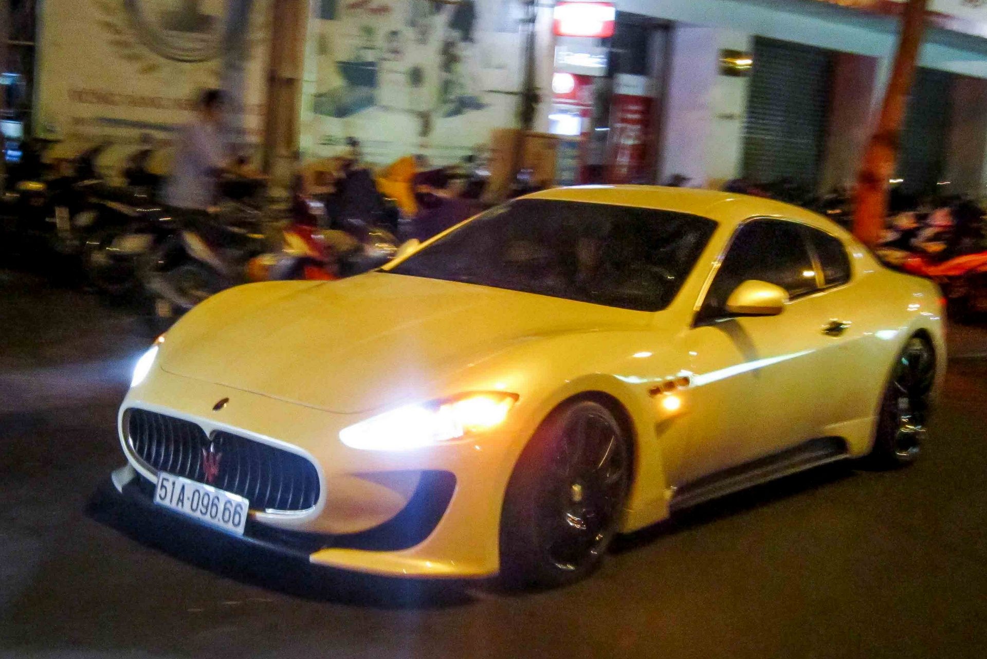 | Chiếc Maserati GranTurismo độ kit MC Stradale cũng xuất hiện. Đây là mẫu xe coupe 2+2 chỗ ngồi của hãng sản xuất Italy. Xe mới có giá từ 250.000 đến 300.000 USD tại Việt Nam. |
