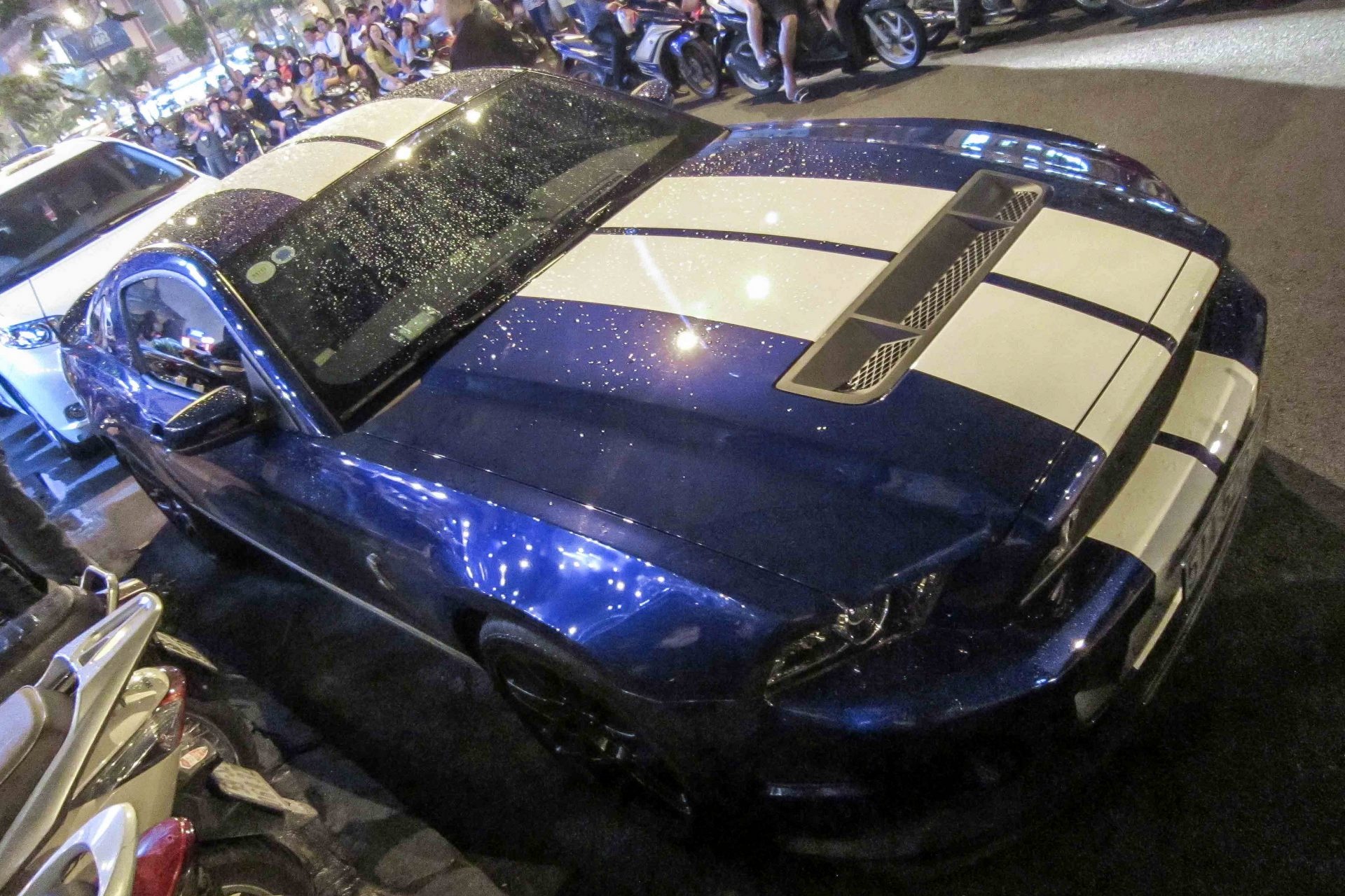 | Tối 30/7, những người đam mê tốc độ tại TP HCM cùng tụ họp tại một địa điểm trên đường Hàm Nghi, quận 1, TP HCM. Đáng chú ý trong dàn siêu xe và xe sang là Shelby Cobra GT500 đời 2013 cực hiếm tại Việt Nam. |