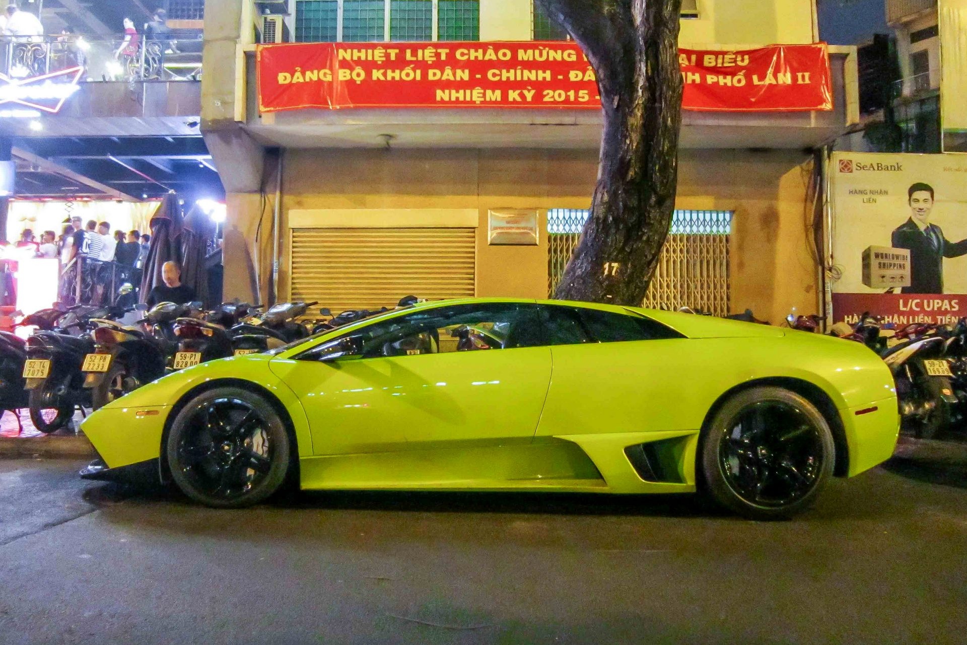 | Chiếc Murcielago LP640 xanh cốm xuất hiện trở lại sau khi đổi chủ nhân. Siêu xe này từng mang biển kiểm soát Đà Nẵng và chuyển vào Sài Gòn từ năm 2014. |