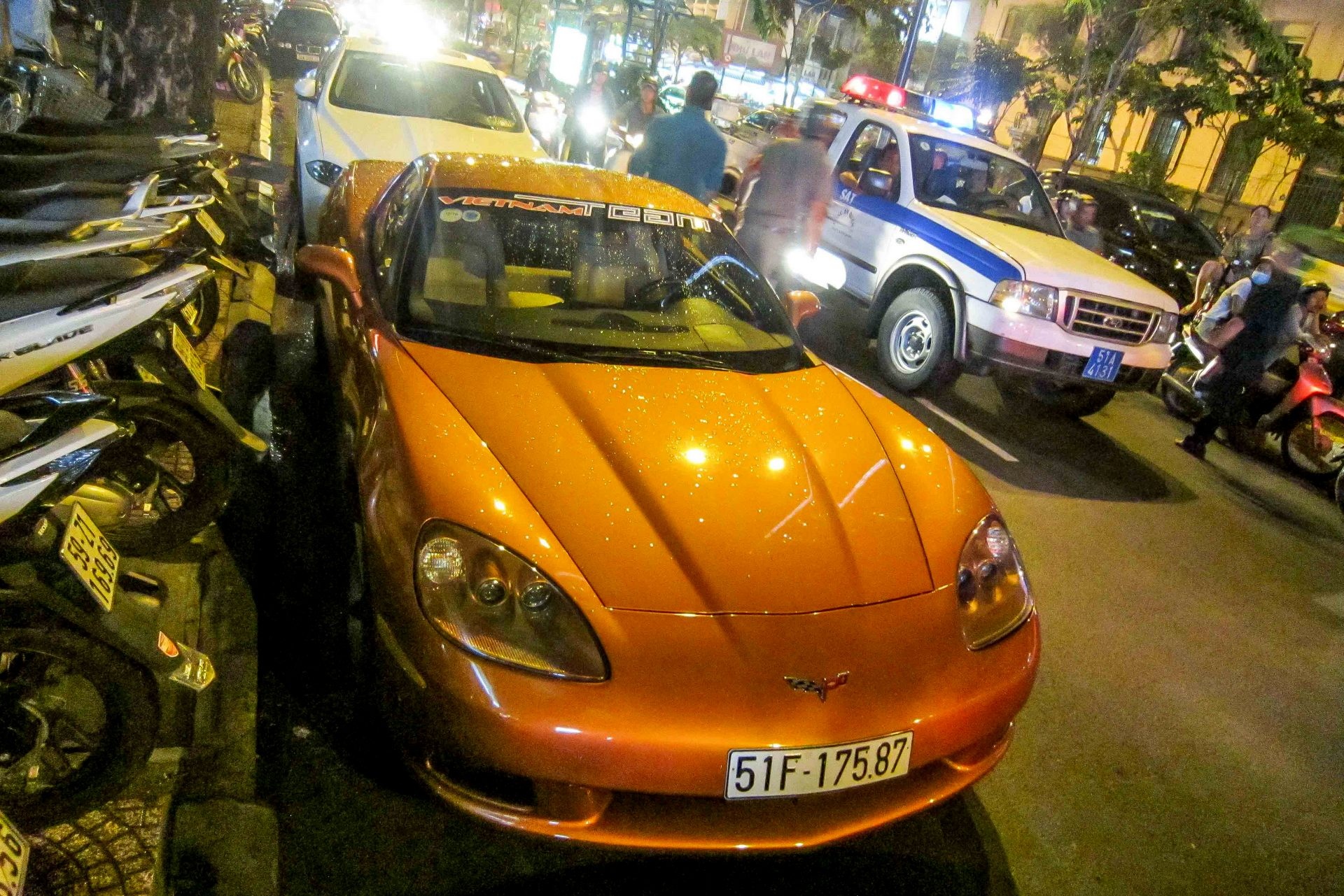 | Xe thể thao Chevrolet Corvette màu cam, về cùng đợt với chiếc màu vàng. Hiện nay Việt Nam có bốn chiếc loại này. |