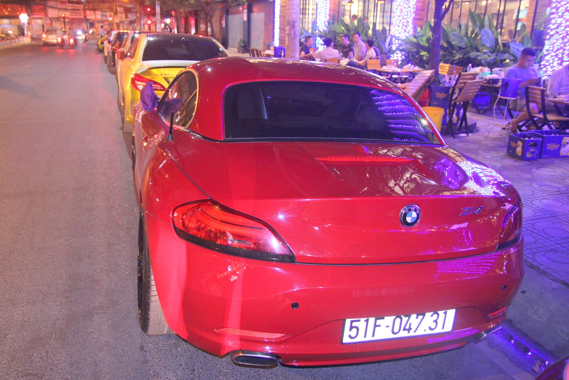 | Xe thể thao BMW Z4 màu đỏ. Chiếc xe này dùng mui xếp cứng, có thể giấu vào cốp chỉ sau vài giây. BMW Z4 có giá từ 2,4 tỷ đồng tại Việt Nam. |