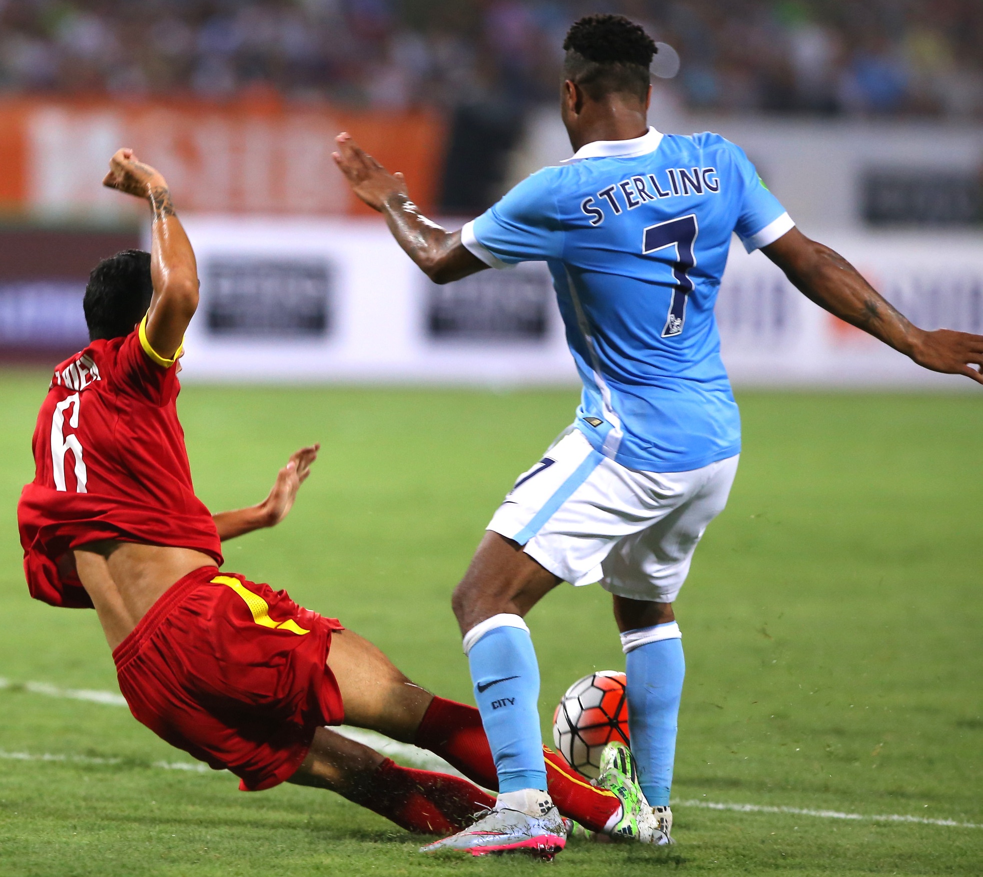 | Kể từ thời điểm bị phạm lỗi tới lúc rời sân, Sterling rụt dè trong những pha tranh bóng ở trận cầu mà Man City dễ dàng vượt qua ĐT Việt Nam với tỷ số 8-1. Văn Quyết là người duy nhất lập công cho đội bóng áo đỏ, trong khi Sterling ghi cú đúp (phút 19 và 30) cho đội bóng anh mới trở về đầu quân từ mùa giải 2015-2016. |