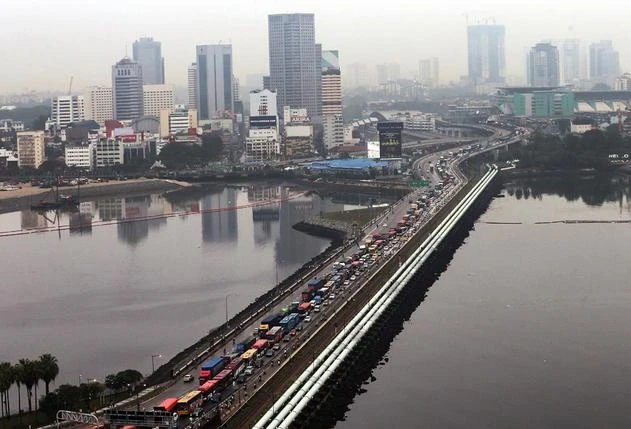 Trời quang mây tại Jalan Satu trong bức ảnh không rõ ngày tháng (trái) và không khí ngập khói tại khu vực này lúc 17h30 ngày 24/9 khi chỉ số PSI đo được là 204-248. Đây là mức ô nhiễm không khí cực kỳ nghiêm trọng. Tình trạng này ảnh hưởng lớn tới sinh hoạt và sức khỏe của người dân đảo quốc sư tử. |