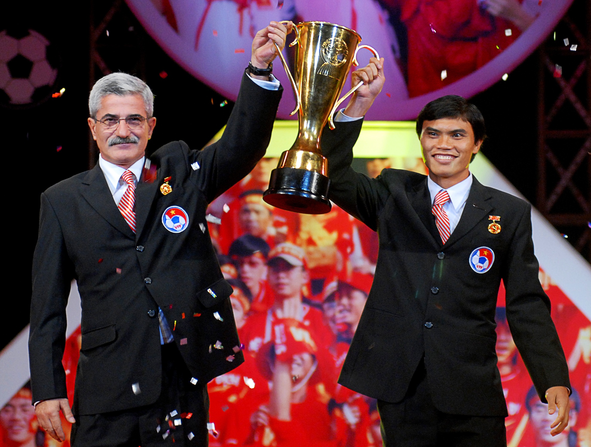 | Việc sắp xếp nhân sự hợp lý của thầy Tô giúp Việt Nam vượt qua người Thái để lên ngôi vô địch AFF Cup 2008. Ảnh: Hoàng Hà. |