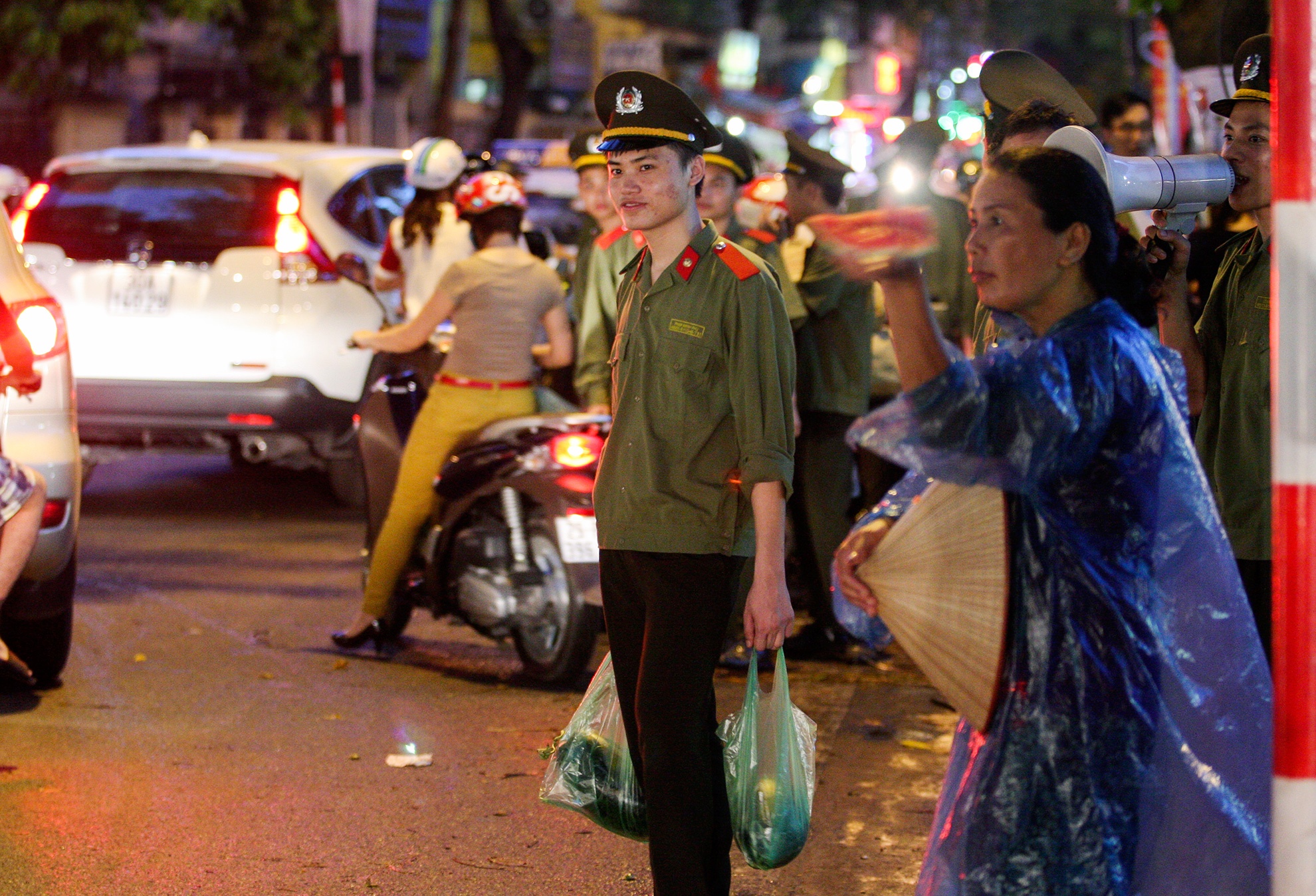 | Chiều 19/5, sinh viên Học viện An ninh nhân dân vận chuyển dưa hấu từ xe tải xuống điểm bán hàng trên phố Thụy Khuê (Hà Nội). |