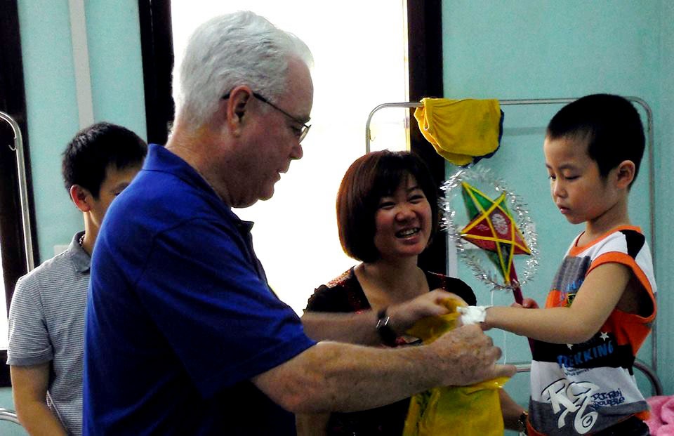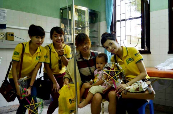 Nằm trong chuỗi hoạt động của môn học thực nghiệm Kinh doanh quốc tế, các sinh viên khoa Quốc tế, đại học Quốc gia Hà Nội đã cùng giáo sư Paul McAfee đến trao quà trung thu cho các em bệnh nhân tại các khoa cấp cứu hồi sinh, tai - mũi - họng và phục hồi chức năng.