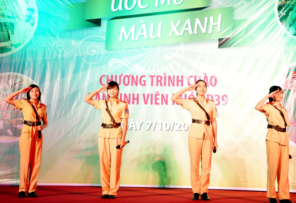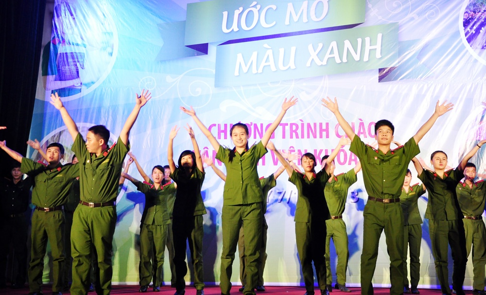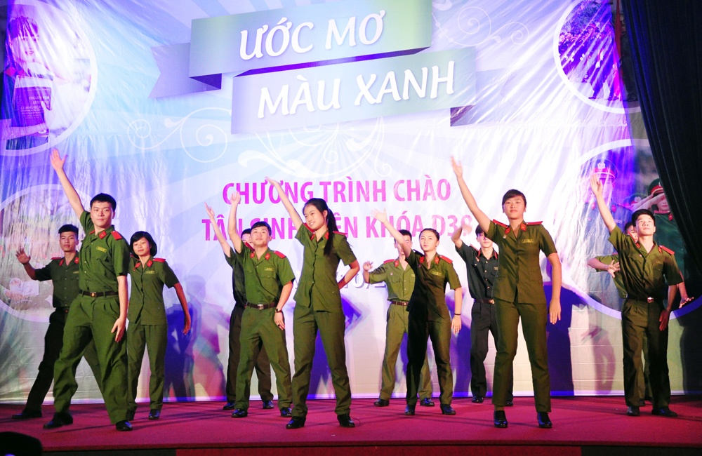 | Tối qua (7/10), Đoàn trường HV Cảnh sát nhân dân đã tổ chức chương trình mang tên "Ước mơ màu xanh" để chào đón các tân sinh vên (D39). |