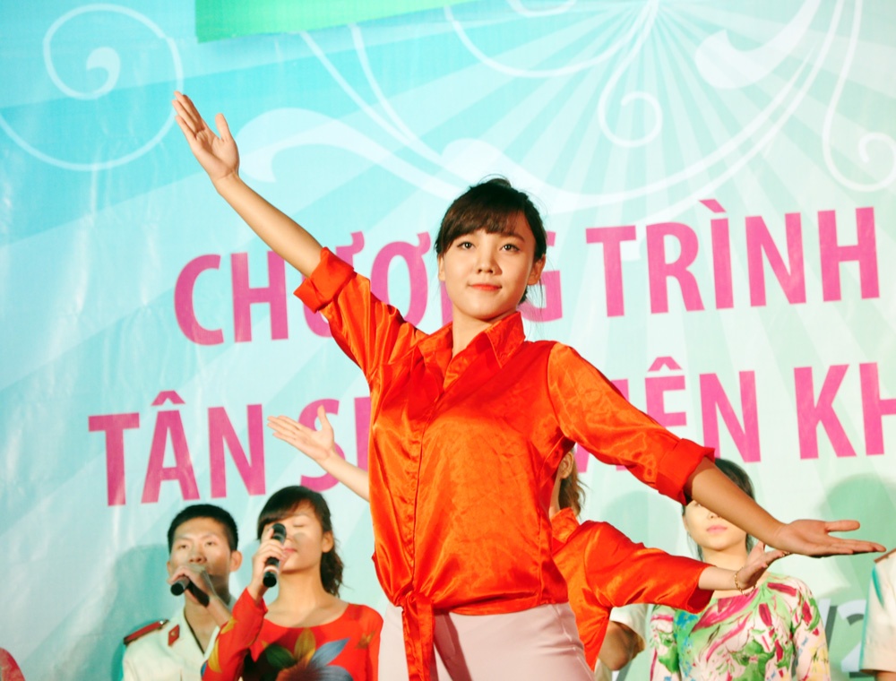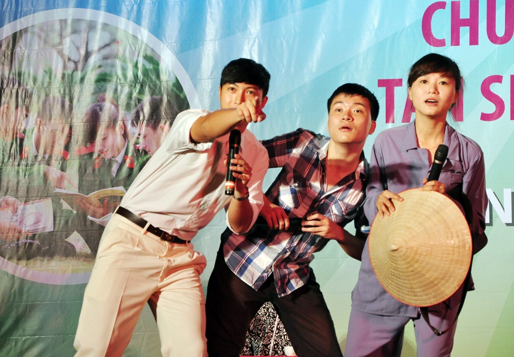 | Đặc biệt tiết mục hài kịch mang tên "Nhập trường" khiến các tân sinh viên cười nghiêng ngả. |