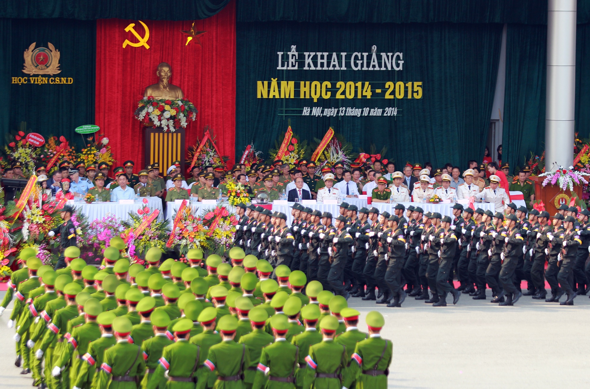 | Hình ảnh tại buổi khai giảng Học viện Cảnh sát nhân dân sáng 13/10. Học viện đã có 46 năm xây dựng và trưởng thành với 37 đơn vị đầu mối, trên 1.200 cán bộ, giảng viên, công nhân viên, trong đó có nhiều giáo sư, phó giáo sư, tiến sĩ, nhà giáo ưu tú. |