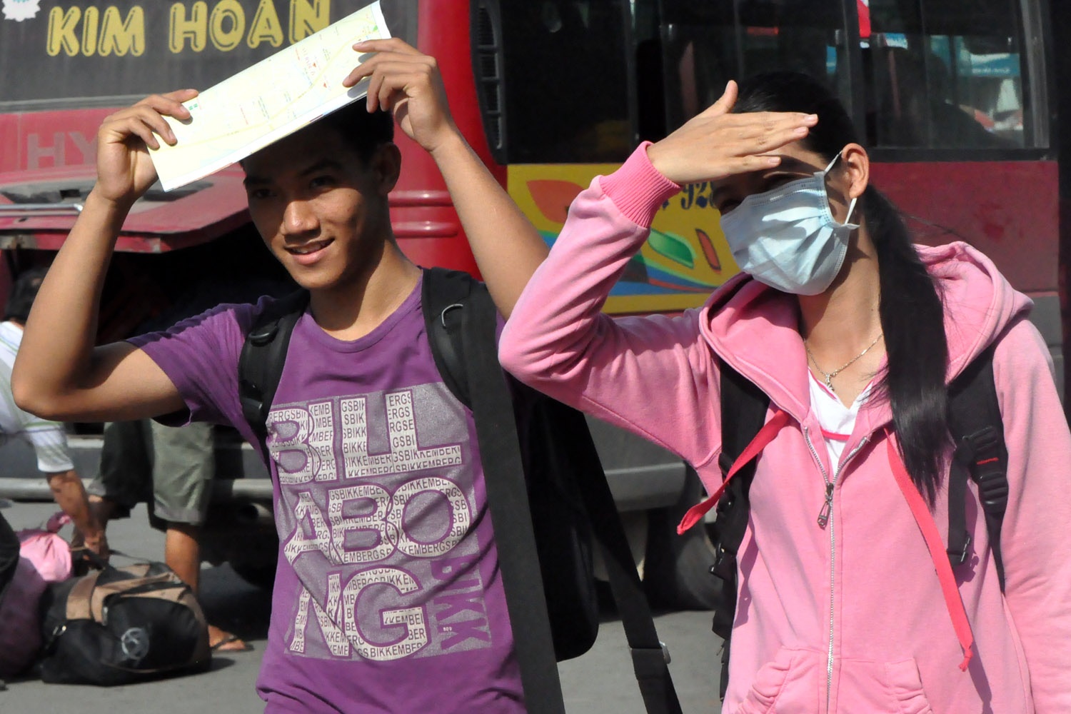 | Nhiều em đi một mình, lĩnh kỉnh đồ đạc. |