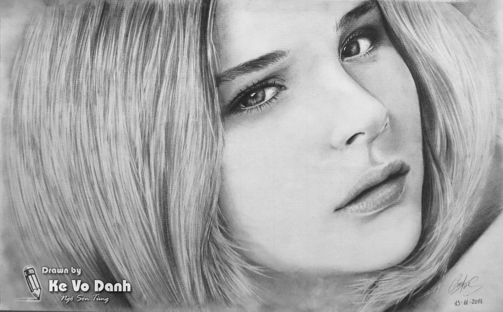 | Bức tranh Sơn Tùng vẽ hot girl Quỳnh Anh Shyn. |