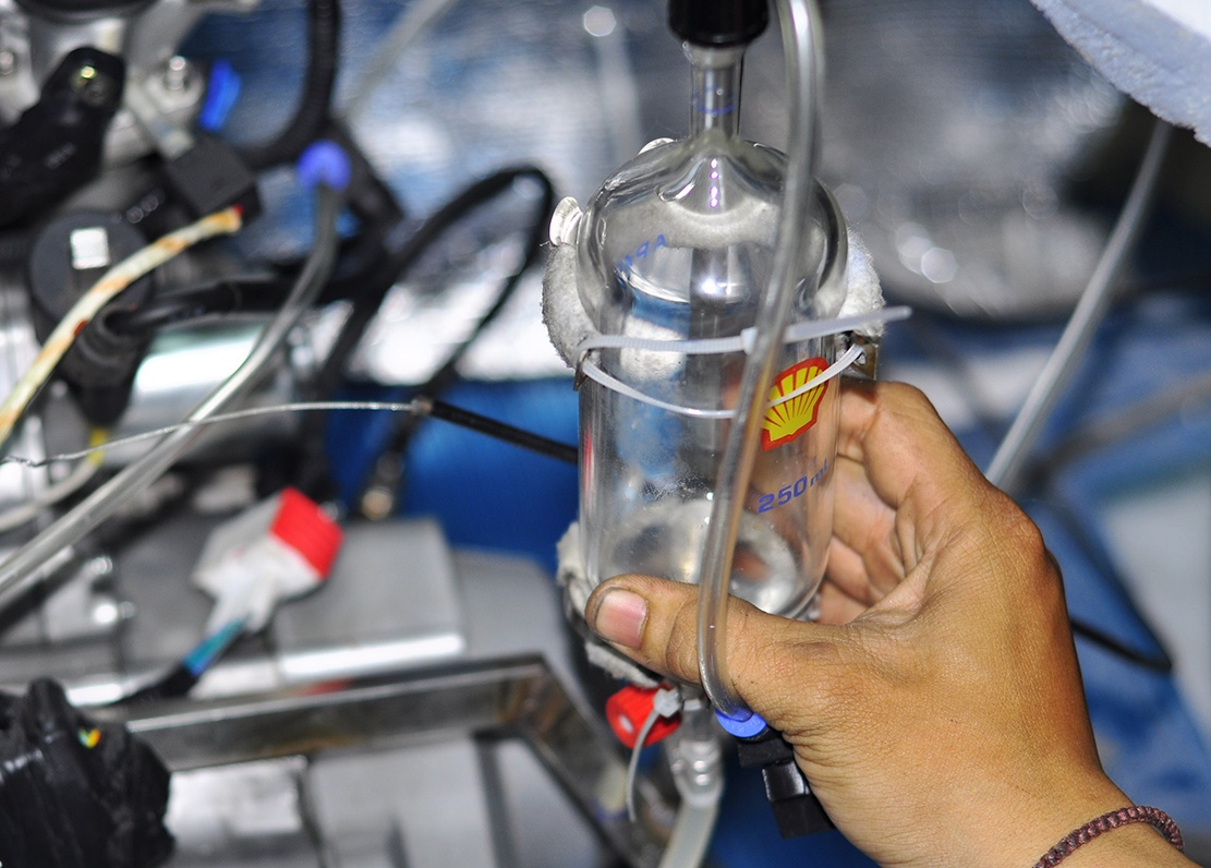 Một sinh viên phụ trách cơ khí cho biết, cồn cháy có nhiệt độ thấp hơn xăng, nén nổ yếu nên công suất không cao. Do vậy, nhóm phải chế lại hệ thống pit-tông và xi-lanh, lắp thêm kim phun điện tử để kiểm soát nhiên liệu.
